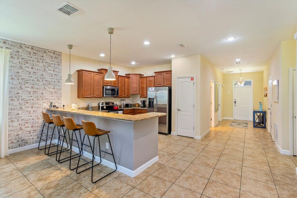 Experience a luxurious stay in this 7-bedroom villa located in ChampionsGate Resort, Davenport, Florida. Feel at home in this spacious 3,500 sq ft villa, just minutes away from Disney World and other attractions. This villa features an open living area with plush sofas and a large Smart TV. The fully equipped gourmet kitchen includes top-tier stainless-steel appliances, a cozy coffee bar, and elegant dining spaces, both indoors and alfresco. Each of the seven bedrooms is beautifully designed and furnished with Smart TVs and access to well-appointed bathrooms. In-house laundry facilities and ample closet spaces are also provided. Enjoy the private pool, hot tub, and comfy patio loungers in the outdoor oasis. Enjoy full access to ChampionsGate's Oasis Club, featuring resort-style pools, a fitness center, air-conditioned cabanas, and on-site dining options. Free parking and self check-in with smart lock are also included. Located in the prestigious Villas at ChampionsGate Resort, this villa is ideally situated near Disney World, Universal Studios, and Orlando’s top attractions. The community’s centerpiece is the 20,000+ sq ft Oasis Clubhouse, offering resort-style pools, water slides, a lazy river, a splash park, air-conditioned cabanas, a fitness center, a tiki bar, poolside dining, a movie theater, and volleyball courts. Golf lovers will appreciate ChampionsGate’s 18-hole championship course and the nearby 36-hole Greg Norman–designed course, plus the David Leadbetter Golf Academy. Quiet hours are observed from 10:00 PM to 7:00 AM. This is a smoke and pet-free property. [SI]