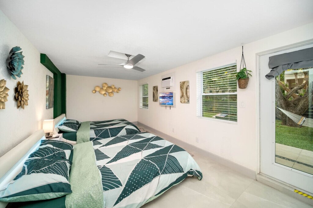 Feel at home in this newly renovated and designed 2-bedroom apartment in the wonderfully safe Victoria Park area, central to the Art District and the Las Olas party scene. This space comes with 2 bathrooms and your own outside space that has a hammock, outdoor shower, and hot tub for you to enjoy. The unit has 2 potent wall units for A/C, one in the room and another in the living room. There is high-speed internet throughout the house and each TV is set up with the most common streaming apps. This unit comes with 2 parking spaces located directly in front of the unit on the white rocks. Pets are welcome with a flat fee of $20 per night for 1 pet and a flat fee of $30 per night for 2 pets. This apartment is centrally located near the Art District and the Las Olas party scene. Check-in time is 4pm and check-out time is 11am. Fort Lauderdale city ordinance quiet hours are from 10pm-8am. No unauthorized guests are permitted after 12am. Smoking inside the house is prohibited and will result in a $350 fine. If we receive more than 3 complaints about your pet creating a noise disturbance, it may result in the termination of your reservation without a refund. [SI]
