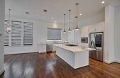 Modern townhouse perfectly located in the heart of Midtown. Just steps from vibrant Downtown,trendy Montrose,the Museum District,and the Medical Center. Enjoy nearby outdoor adventures at Buffalo Bayou parks and trails. Set within a gated community,this 3-bed,3.5-bath home features an open-concept second floor with marble counters,dry bar,and wine chiller—ideal for entertaining. The first floor includes a spacious en-suite bedroom with a private patio beyond French doors. Solid wood floors run throughout,with large windows and high ceilings adding a grand ambiance. On the third floor,the romantic primary suite offers a large closet and bath with dual vanities and a separate shower. A second bedroom with private bath and a centrally located laundry room complete the floor. The fourth level features a rooftop terrace perfect for relaxing and enjoying stunning views of Downtown Houston. MLS# 71134277