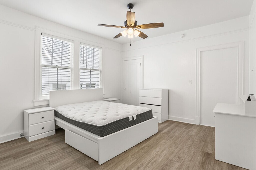 New stainless steel kitchen appliances, quartz countertops, large island with barstool seating, Steps from campus, this upper unit has tons of natural light, large kitchen and living spaces newly renovated. All bedrooms are independent. bathrooms have custom tile. Central AC & Heat, apply today ! Washer/dryer in unit Off street parking New central AC and Heat Private Front Porch Large Backyard with New Outdoor Patio Area