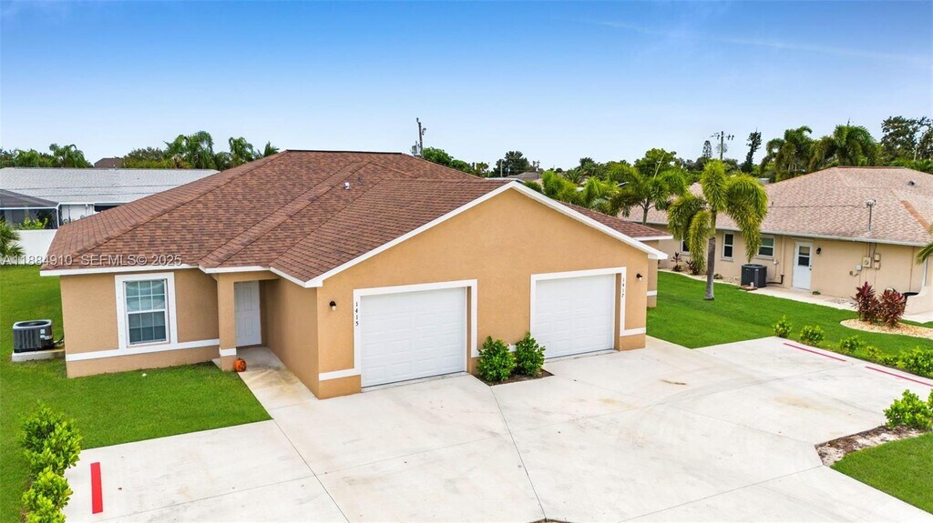 Welcome to 1417 Academy Blvd – First Month FREE! Enjoy modern living in this newly built home featuring tile floors throughout, granite countertops, and stainless steel appliances. The primary suite includes a walk-in closet and walk-in shower, while the second bath offers a tiled tub. Relax in your spacious grassy backyard or take advantage of the oversized 1-car garage and in-unit washer/dryer. Centrally located near shopping, restaurants, Sun Splash Water Park, and The Courts at Cape Coral. Quick access to both bridges for an easy Fort Myers commute. Move in today and enjoy your first month’s rent FREE! MLS # A11884910