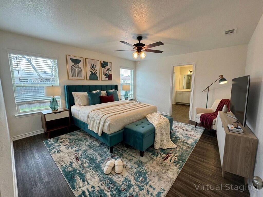 View 360 Virtual Tour: This beautiful 3-bedroom, 2-bathroom home for rent in Killeen, TX offers a modern layout with vinyl plank flooring throughout and recessed lighting that adds a bright, updated feel. The kitchen features granite countertops, a subway tile backsplash, stainless steel appliances including a dishwasher, glass-top stove, and microwave range, plus a dedicated dining area for everyday meals or entertaining. The primary bedroom includes an extra-large closet, while the ensuite bath offers a sleek shower with a sliding glass door. Washer and dryer connections provide added convenience. Outside, enjoy an enclosed backyard on a corner lot, along with an attached two-car garage and additional driveway parking. Pet Deposit: $300 refundable pet deposit, per pet pending any damage(s). No more than two (2) pets. No aggressive breeds (Pit Bulls, Dobermans, Rottweilers, or Chows) will be allowed. Appointments aren’t required to tour. Contact us or stop by our Killeen office to learn more and see this home in person once it becomes available! We are located at 1020 W Jasper Dr, Killeen, TX 75642. Disclaimer: The furnishings or enhancements shown are AI-generated and intended for inspiration only. They may not reflect the actual scale, condition, or current features of the property.