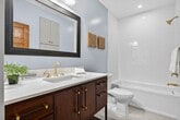 Welcome to your new home in the heart of Hill East, just one block from Potomac Metro, The Roost culinary hall, Safeway, and the newly developing Ellipse Park. This beautifully renovated 3-bedroom, 2.5-bath residence occupies the top two levels of a meticulously rebuilt early-century rowhome. Step inside to an expansive main floor anchored by rich hardwood flooring, tall ceilings, and thoughtful craftsmanship throughout. The gourmet kitchen features quartz countertops, refined cabinetry, gas cooking, a built-in wine storage nook, and an adjoining butler’s pantry with additional prep and storage space. The open layout provides a natural flow for everyday living and hosting. Upstairs, you will find your three bedrooms, including a serene primary suite with generous closet space and an en-suite bath. The bedrooms offer high ceilings and ceiling fans for added comfort. A dedicated laundry with a full-size washer and dryer adds convenience to your daily routine. Out back, a private patio offers the perfect outdoor spot for grilling or unwinding. A secure, reserved carport parking space is also included. This residence blends historic character with contemporary upgrades, all in a location that offers access to some of Capitol Hill’s best dining, commuting, and neighborhood amenities. - Available lease terms: $4950 for 18+ months or $5450 for 12-month terms. - Utilities: $350 monthly flat fee for all utilities including High-speed Internet - Amenity and Move-in Fee: $0 - Sorry, no pets! This property is professionally managed by Adonis Property Management. At Adonis, we proudly welcome all applicants, including those using rental housing assistance through local or federal programs. We are an Equal Opportunity Housing provider and operate in accordance with the Fair Housing Act.