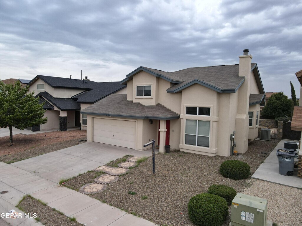 Beautiful modern day tri-level 3 bedroom 2 bath home in fast growing far East El Paso. Freshly painted inside and out with spacious bedrooms each with its own walk-in closet and ceiling fan. Amazing master bathroom with garden tub and standing shower. Oversized versatile loft. Living room with fireplace,breakfast area in kitchen,carpet in bedrooms and loft,laminate tile in kitchen,living room,and hallway. Refrigerated Air for those hot summer days. Landscaped front and back yard perfect for entertaining. 2 car garage with washer and dryer hookups. Spacious pantry,linen,and coat closets. Close to schools,dining,and shopping. New water heater installed November 2024.