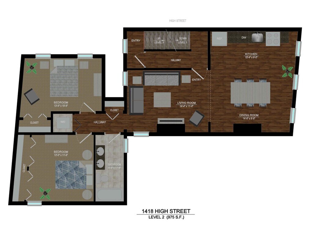 There is currently a 3 Bed 2 Bath Apartment for rent with 1,675 listed at 1418 High St. It is Available June 1, 2026.