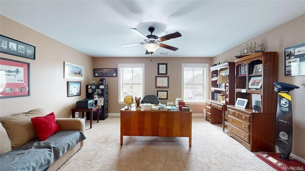 For Rent – $3,200/month - Pets Welcome - Available July 1, 2026 Spacious 6 BedroomR/3.5 Bathroom home in desirable Glennbrooke! Flexible floor plan with 6th bedroom that can serve as bonus/rec room or office. Foyer entry with wood flooring in main living areas and open staircase with iron railing. Formal dining room plus great room with tall ceilings and gas fireplace open to the kitchen featuring abundant cabinetry, island, smooth surface range with decorative hood, stainless appliances, walk-in pantry, and refrigerator included. Downstairs primary suite offers separate vanities, garden tub, tile shower, and large walk-in closet. Half bath on main level for guests. Upstairs includes 4 additional bedrooms and 2 full baths (one Jack & Jill). One bedroom features a sitting area. Large bonus room upstairs for added living space. Additional features include overhead garage storage, extended driveway space, fully fenced backyard, and covered back porch. Located in Glennbrooke with community amenities including pools, splash pad, clubhouse, pond, and green space. Convenient to interstate, shopping, dining, Maxwell AFB, and Montgomery.