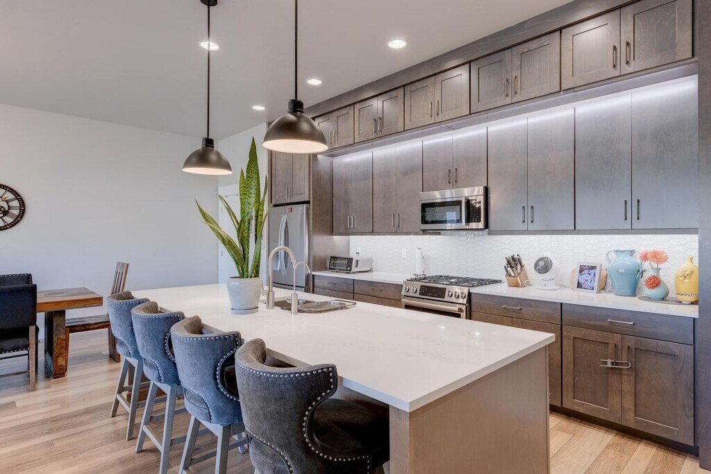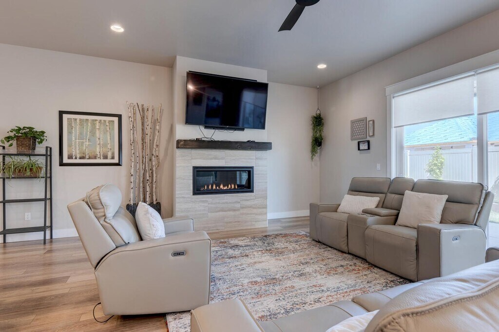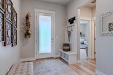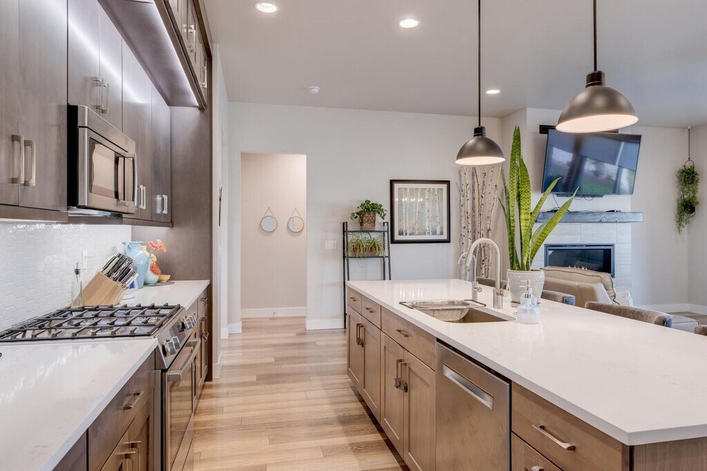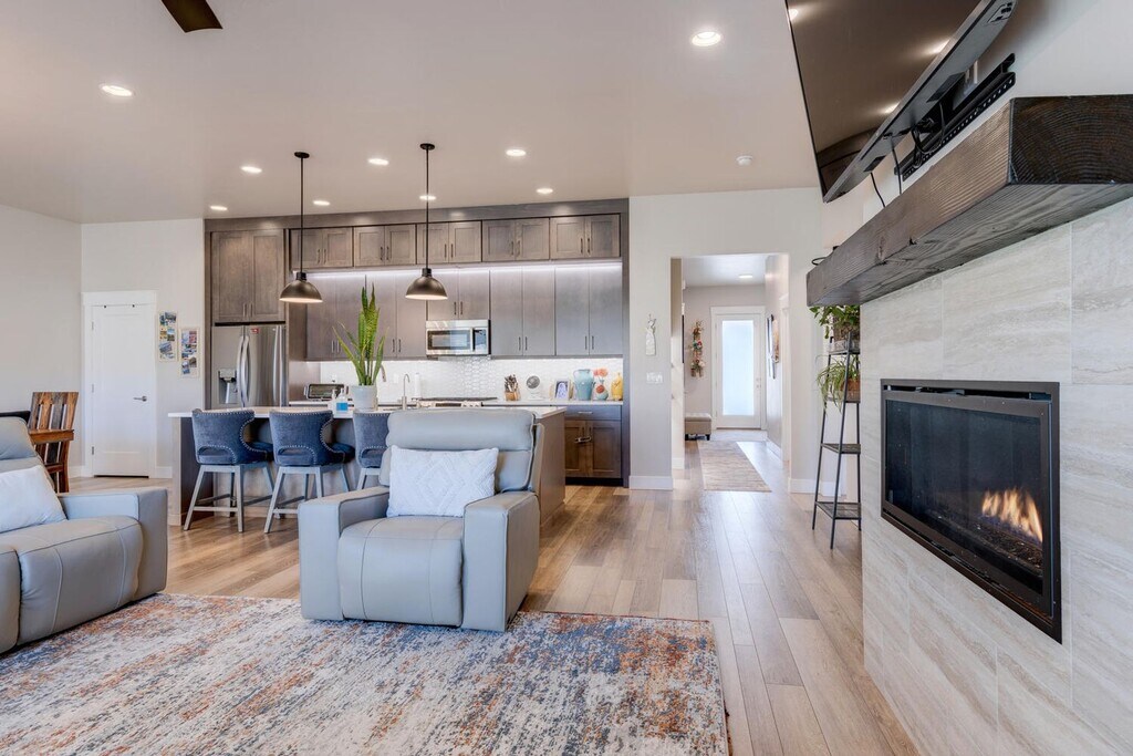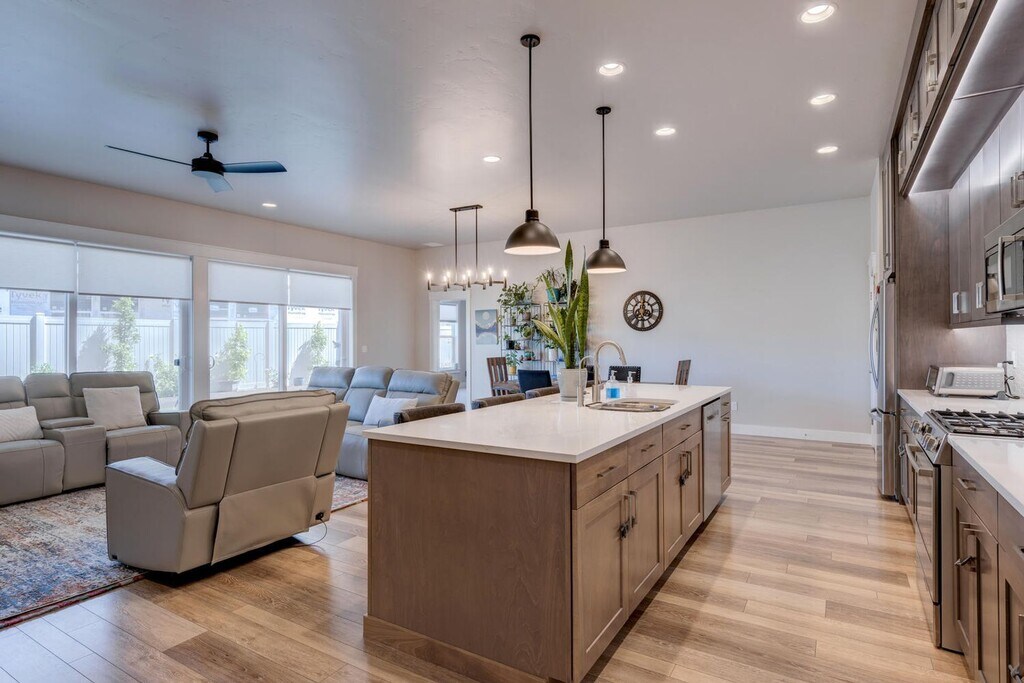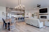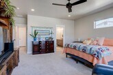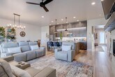 This homes combines contemporary style with comfort and convenience. 3 bedrooms, 2 bathroom, an office and a bonus room above the garage. Bonus room and office could be used for additional bedrooms. The design features an open and spacious great room that receives ample natural light, complemented by attractive laminate floors. The kitchen follows a modern look with stylish cabinetry equipped with soft-close features, a large pantry for storage, high-quality appliances, and a beautiful island that doubles as a breakfast bar. One notable feature of this plan is the inclusion of a RV garage, providing ample space to park recreational vehicles or other toys. This feature caters to individuals who have a need for extra storage or who enjoy outdoor activities that require additional space. The backyard of the home offers a covered patio, providing a pleasant area to relax or entertain guests.