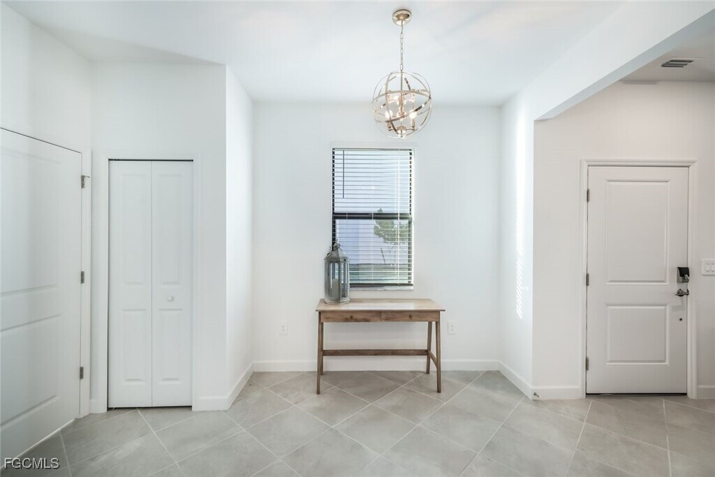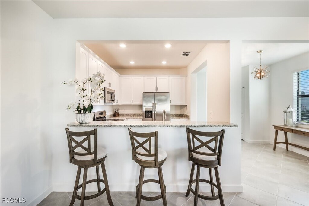 This stunning NEVER LIVED IN END UNIT townhouse in the amenity-rich community of Timber Creek offers 1,934 square feet of light-filled living space. With 3 bedrooms,2.5 baths,and a 1-car garage with a paver driveway,this home provides both functionality and curb appeal. As you step inside,you'll immediately notice the abundance of natural light streaming through the many windows,creating an inviting and airy atmosphere. An open-concept main level is enhanced by custom wood accents and sleek tile flooring. The spacious kitchen features granite countertops,stainless steel appliances,white shaker cabinetry with crown molding,and a breakfast bar. Upstairs,the large primary suite boasts an ensuite bath with dual vanities and a glass-enclosed shower,while plush carpeting adds comfort to all of the bedrooms. Outdoor living is just as enjoyable with a screened lanai that overlooks a large backyard space. IMPACT windows provide peace of mind,and the home is not in a flood zone! Timber Creek is a vibrant,amenity-rich community offering resort-style living with a wide range of activities for all ages. Residents enjoy access to multiple pools,a clubhouse,a fitness center,sports courts,pickleball,a putting green,a sauna,and even an on-site restaurant. Conveniently located in Fort Myers just off Daniels Parkway and Route 82,this home is minutes from JetBlue Park,RSW International Airport,The Forum,shopping,dining,and entertainment options. Don’t miss this opportunity to own a beautiful home in one of Fort Myers' most desirable communities!