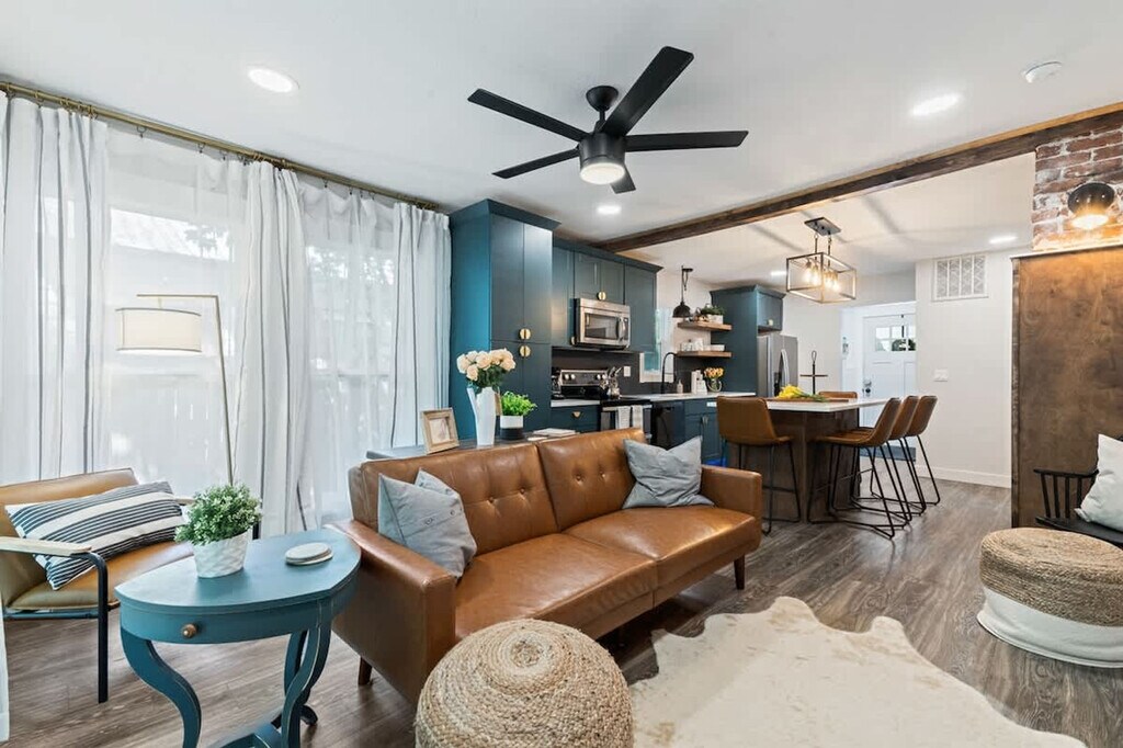 Feel at home in this fully renovated home located right next to the Fairview Golf Course in Caldwell, Idaho. Set on a spacious corner lot with towering mature trees, this home offers scenic beauty and peaceful surroundings in every season. Step inside to discover a fully customized open-concept floorplan, thoughtfully designed to blend style and functionality. Natural light pours through large windows, highlighting the fresh modern finishes and warm, inviting layout. This home offers all the comforts you'd expect, including a fully stocked kitchen, in-unit laundry, and fast Wi-Fi. Well-behaved pets are allowed with prior approval and a fee of $50 per stay. Ideal for couples, small families, and traveling professionals, this home provides a perfect retreat. There is limited public transportation, so you will definitely want a vehicle to get here and around town. While Uber or Lyft may be available, it may be sparse with long wait times. Check-in is at 4:00 PM and check-out is at 11:00 AM. Late check-outs beyond 30 minutes without prior approval will incur a $300 fee. Parties, events, and unauthorized gatherings are strictly prohibited and may result in immediate termination of the reservation without a refund and an additional cleaning or disturbance fee. Smoking (including vaping and cannabis) inside the home will result in a $250 cleaning fee. Only guests included in the reservation are permitted on the property unless approved in advance; additional unregistered guests may incur a $100 per person per night fee. Quiet hours are from 10:00 PM to 8:00 AM; please respect our neighbors by keeping noise to a minimum during these hours. Tampering with security devices is strictly prohibited and will result in cancellation without refund. Any violation of these rules may result in additional charges, removal from the property without refund, and/or reporting. Outdoor and garage amenities are offered as a courtesy and are considered self-maintained. While we do our best to prepare these areas, they are exposed to weather and natural elements and may not always be in working condition during your stay. These amenities are not guaranteed and not subject to compensation if unavailable or malfunctioning. Our home is professionally cleaned and pest-controlled, but due to our location, occasional outdoor insects or wildlife may be present. This is considered normal for the area and does not qualify for refunds. This home is in a lived-in neighborhood. While it’s generally quiet, we cannot guarantee there won’t be occasional sounds of neighbors, pets, or traffic. No refunds will be given for external noise beyond our control. For the safety of guests and the property, outdoor-only security cameras are in use. There are no cameras inside the home. Early check-in and late check-out are not guaranteed and must be pre-approved in writing. Unauthorized late check-outs may incur fees. In the rare event of a local utility outage, the host is not responsible, and no compensation will be provided. We regularly update and improve our space. While photos are representative, some decor or furniture may differ slightly. Guests are responsible for any damage beyond normal wear and tear. While we strive to keep the property in excellent condition, guests acknowledge that minor signs of wear and tear may be present due to normal use. These do not constitute damage or justify refunds. [SI]