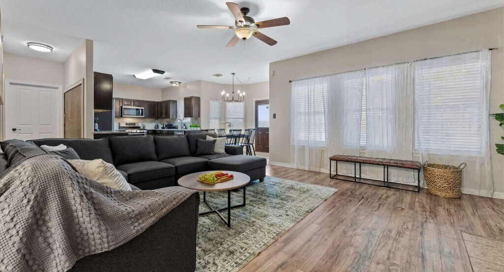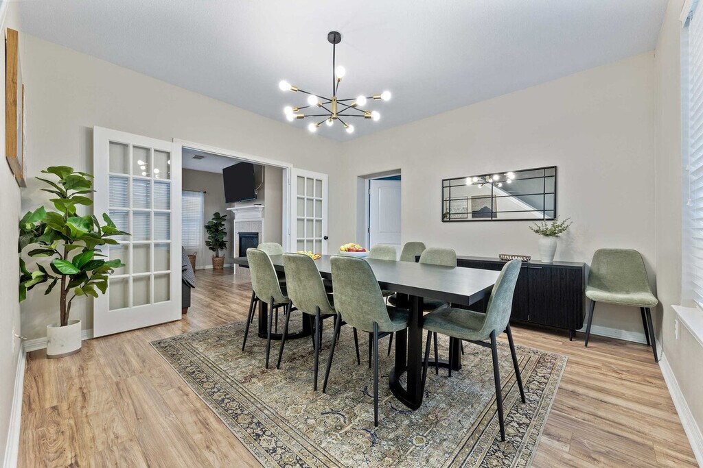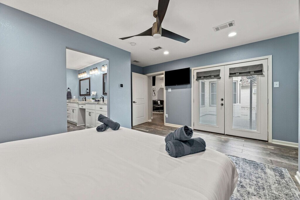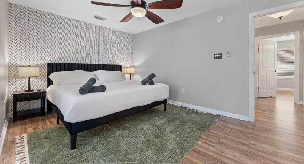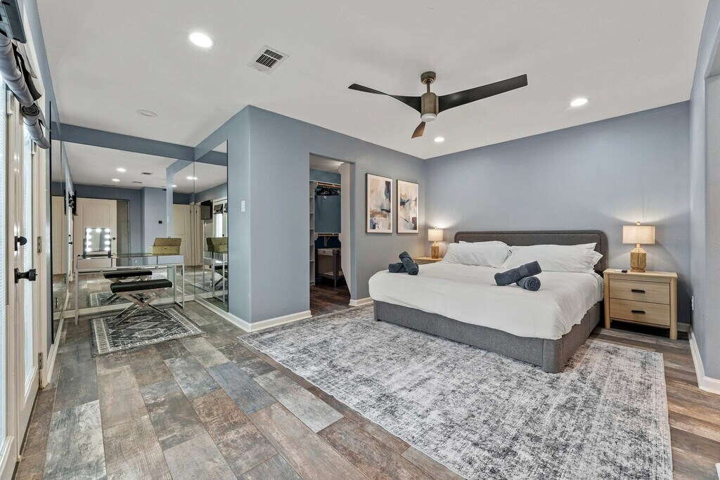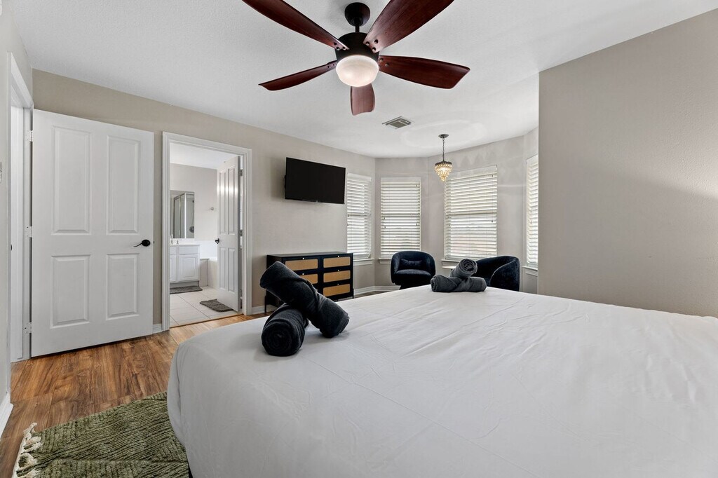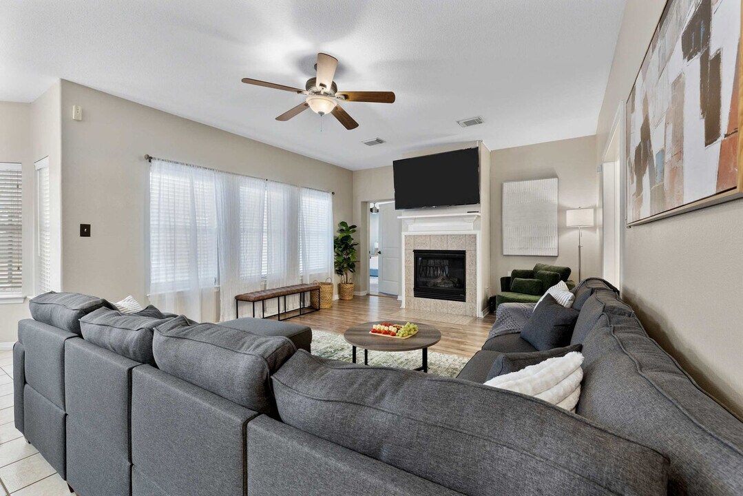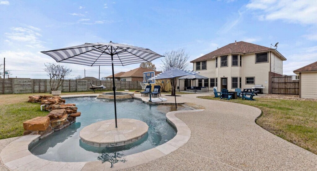 The advertised rate of $7,855/month is the lowest available price, based on a 30 day(s) stay with a move-in date of August 2, 2026. Rates vary depending on the duration of stay, season, and other parameters. For exact pricing and additional pricing components, please visit our website and enter your desired move-in and move-out dates. The rate is applicable when billed upfront; it can be higher if billed in multiple payments. Feel at home in this stunning 7-bedroom, 4.5-bathroom estate, perfect for large groups seeking luxury and entertainment. Relax in the sparkling pool and unwind in the kiddie pool. Enjoy endless fun in the dedicated game room/home theater. The spacious backyard offers ample room for outdoor activities, while the elegant interiors provide a comfortable and stylish setting. The smart TVs are equipped with streaming apps like Netflix, Amazon, YouTube, along with cable TV. The login info will be provided upon request. Pets are welcome with a fee of USD 150 per pet per stay. An additional nightly fee of USD 39 per night will be applied for each guest exceeding the first 6 guests. Located just 10 minutes from Lake Conroe, this home offers easy access to boating, fishing, and dinner cruises on the Southern Empress. Sam Houston National Forest is a 14-minute drive for hiking and camping, while Riva Row Boathouse is 22 minutes away for kayaking. Shop at nearby Kroger (12 mins) or Walmart (10 mins), and enjoy local dining at Guadala HARRY’S (12 mins) or The Wave On The Lake (15 mins). It's a perfect spot for outdoor adventures, dining, and everyday conveniences. Only registered guests are allowed. Smoking is prohibited inside the property, and there is a USD 750 fine for violations. Quiet hours are between 10:00 PM and 9:00 AM. Any violation of the house rules will result in forfeiture of the security deposit. For safety purposes, there are 2 cameras installed in the front door facing the front yard and in front of the garage facing the cars, which will be recorded 24/7 for security purposes, not inside the house to keep your privacy. The extra bedroom will only be opened for groups of 8 or more guests, and the fifth bedroom for groups of 10 or more guests. This home has a garden/pool area, and you may see wildlife in the yard and the occasional outdoor insect making an indoor appearance. The pool is professionally serviced twice a week during the summer months and once a week during the rest of the year. As this is an outdoor pool, it’s normal for some leaves or debris to appear between cleanings. All necessary chemicals are properly balanced, and the filtration systems are regularly maintained for your safety and comfort. The pool technician accesses the area through the backyard gate, and the landscaper will go once a week. [SI]
