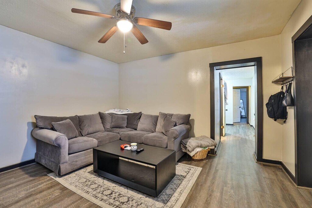 Charming 2-bedroom,1-bath home filled with natural light! Features LVP Flooring in the primary bedroom with a walkout,oversized closets,and a versatile bonus room between the bathroom and bedrooms- perfect for an office,dressing area or extra storage with two additional closets. Enjoy brand-new interior doors,a refreshed bath with a new shower head,and a welcoming covered front porch with gated entry. Move-in ready and full of character,this home offers comfort,functionality and style throughout!