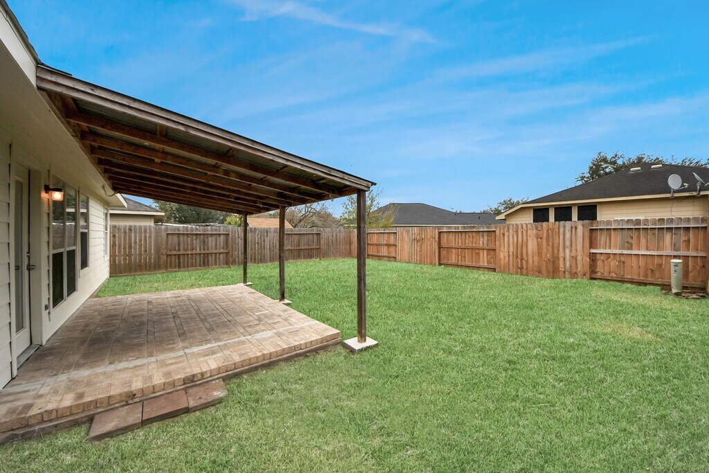 Beautiful home in Brazos Village. Exellent condition. Front Door has a Beutiful Beveled GLass,windows are energy efficent. With Granite Countertops,and covered Patio. Nice Size Backyard,Quiet Neighborhood,easy access to major roads/freeways MLS# 75869707