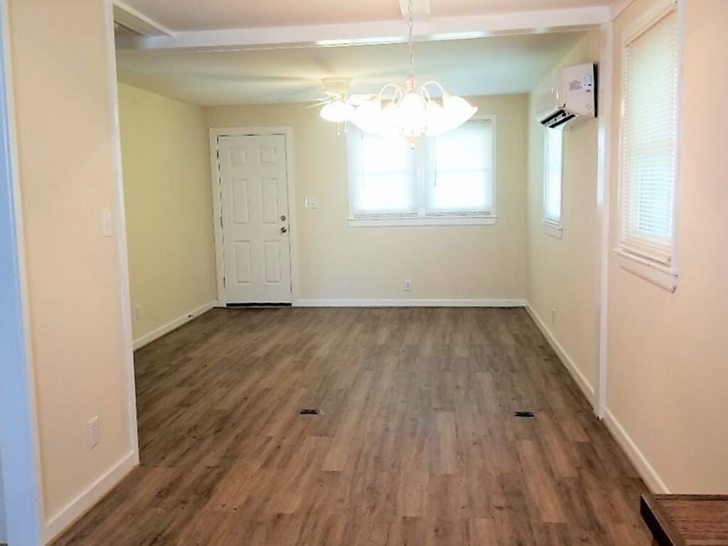 2 bedroom and 1 bathroom home. There is a kitchen, dining area, and living room. There are appliance hook ups in the kitchen. The home has a mini split system that cools and heats the home. PETS: Subject to Owner Approval