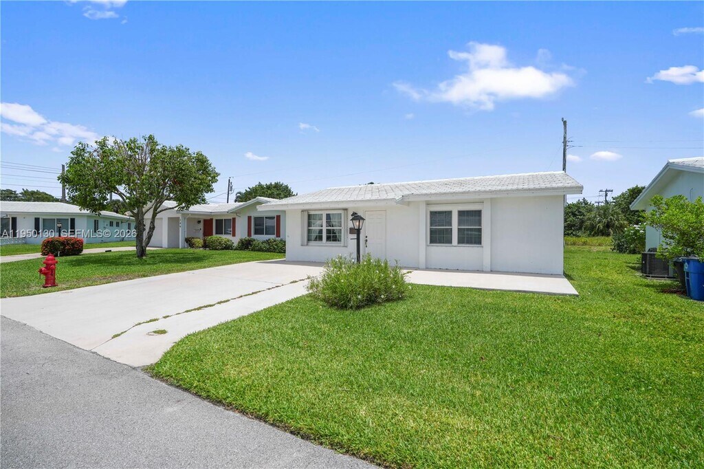 Palm Beach Leisureville is a 55+ active adult community in Boynton Beach, FL. This cozy residence offers a comfortable living space with two bedrooms and a bathroom. The home features tile floors and recessed lighting. The kitchen is fully equipped for everyday cooking, and the backyard is an enclosed patio, providing a protected outdoor area. The home has central air conditioning and heating, along with an in-home washer and dryer for convenience. The property is close to grocery stores, restaurants, cafés, shopping, and local sports and recreation options, making it easy to stay active and enjoy the area. Suitable for families, this home is a solid choice for comfortable living. Contact us for more information or to schedule a viewing. MLS # A11950130