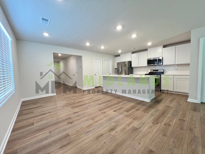 Welcome to 142 Parkwood Ct, a newly constructed haven boasting modern design and exceptional convenience. This exquisite property spans a generous floor space, integrating a seamless open floor plan that caters to both the enthusiasm of entertainers and the solace of homebodies. The heart of the home flourishes under a canopy of recessed lighting a spacious kitchen that features pristine countertops, a walk-in pantry, and brand-new stainless steel appliances, including a refrigerator, dishwasher, sleek gas range, and an overhead microwave. The expansive island not only provides ample space for meal preparation but also doubles as an inviting breakfast bar. Adjacent to the kitchen lies the living area where natural light cascades through large windows, illuminating the wide plank wood-like floors that extend throughout the main level. This space offers a versatile blank canvas for a variety of furniture layouts and decorative styles, ensuring it meets the aesthetic and functional needs of any homeowner. The main level master suite is a manifestation of comfort and convenience, encompassing a generous footprint for a king-size bed and additional furnishings without forgoing the sense of open, airy living. Its en-suite bathroom features a dual vanity with abundant storage and a walk-in shower, accentuated by neutral tones and modern fixtures that create a spa-like ambiance. Ascending to the second level, one is greeted by a loft area that presents a multitude of possibilities from a cozy family retreat to an imaginative play space or a productive home office. This adaptable area is a testament to the thoughtfulness infused into the design of the home. With a total of five bedrooms, the residence comfortably accommodates both large families and guests. Each room mirrors the homes contemporary aesthetic, ensuring uniformity and style. Additionally, the inclusivity of laundry machines uplifts the homes practicality, avoiding the usual logistical hassles associated with the installation of such appliances. Externally, the property exhibits a commitment to low-maintenance living without compromising on visual appeal. 142 Parkwood Ct is a modern-day epitome of elegance and ease, thoughtfully crafted to embody the vision of a dream home. It is an offering that promises a lifestyle upgrade in a welcoming community a perfect canvas awaiting personal touches to transform it into a beloved home. *No Pets Allowed.* **BEWARE OF SCAMMERS! THIS PROPERTY IS ONLY BEING LISTED BY MIDLANDS PROPERTY MANAGEMENT. WE DO NOT ASK FOR MONEY TO BE WIRED, CASH APP, VENMO, ETC. WE DO NOT ADVERTISE ON CRAIG'S LIST OR MARKETPLACE. CALL WITH QUESTIONS!** This property allows self guided viewing without an appointment. Contact for details.
