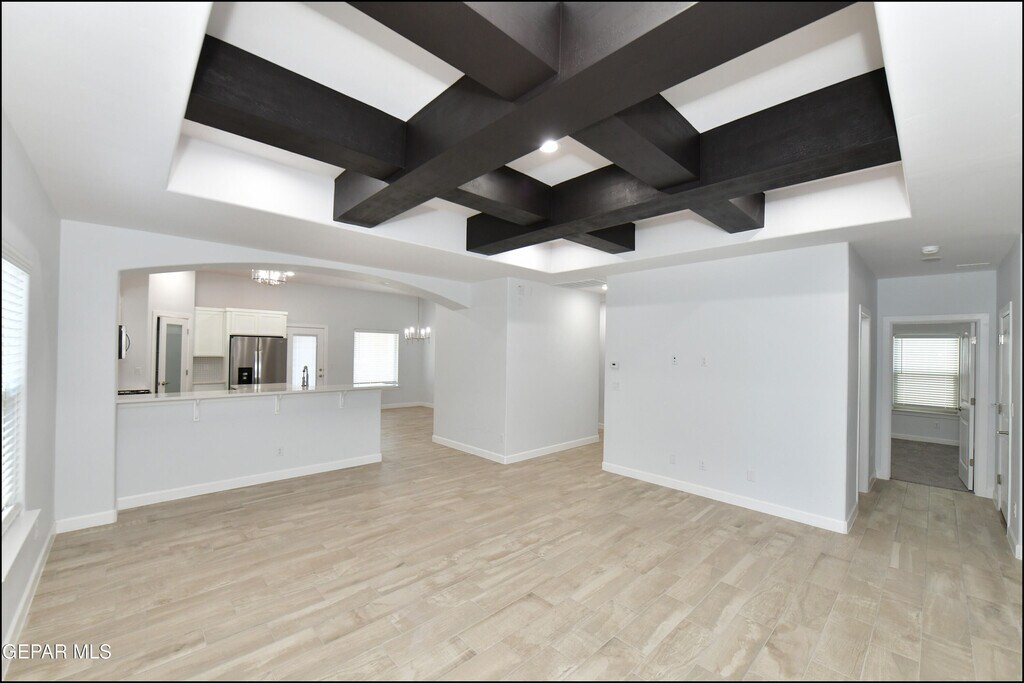 Experience refined living in this nearly new home located in a highly desirable community that offers more than comfort. It offers a true quality lifestyle. This beautiful residence features an open concept floor plan with 3 spacious bedrooms,2 full bathrooms,and a 2-car garage. Step inside to soaring high ceilings Abundant natural light and the beams in the ceilings create a bright and welcoming atmosphere. The stylish kitchen features a farmhouse sink,oversize island,granite countertops,walk in pantry and a cozy breakfast area,The Master's suite offer double vanities,and a custom glass enclosed shower. 2 additional sized bedrooms share the bathrooms. This property combines modern elegance,functionality and comfort. Ready to welcome its next residents