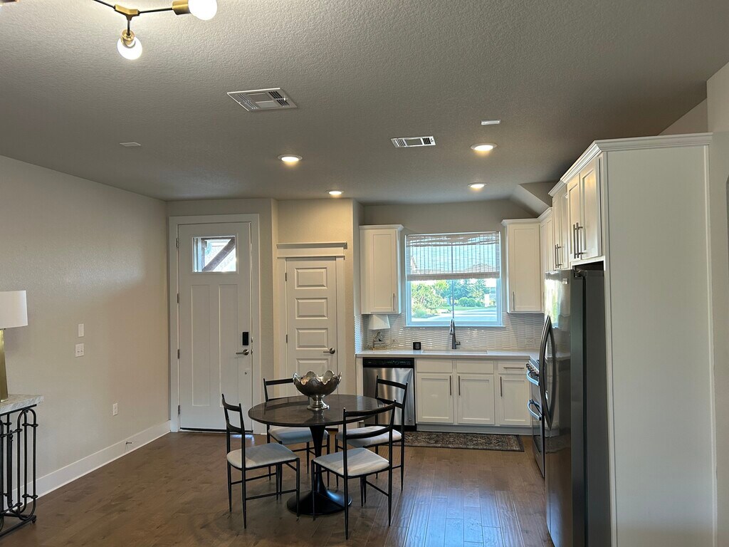 Currently furnished but will lease unfurnished. Available for a minimum of 90 days or long term. Like new gorgeous modern farmhouse in gated community. Primary bedroom on first floor with TV and view of private treed back area. Primary bath has quartz countertops,double sinks and large closet. Hardwoods in living and dining. Kitchen has quartz countertops,gas cooking,pantry and refrigerator. Very private and quiet treed back space with no rear neighbors. Two bedrooms,office and game room up with large TV and comfortable sectional. Fully equipped just bring your suitcase. First floor half bath and laundry room with washer and dryer. Community pool,hot tub,walking trails and gazebo. Yard maintenance included. Owner/Broker. MLS# 10964740