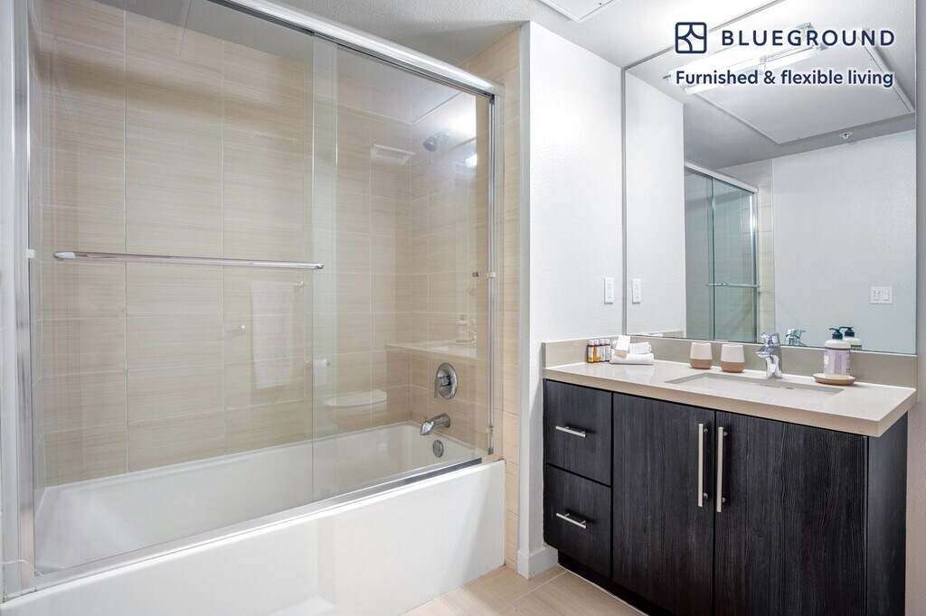 Show up and start living from day one in Santa Monica with this stylish one bedroom Blueground apartment. You’ll love coming home to this thoughtfully furnished, beautifully designed, and fully equipped Downtown home. (ID #LAX207) The advertised rate of $3,040/month is the lowest available price, based on a 1 month(s) and 29 day(s) stay with a move-in date of November 11, 2025. If you’re looking for a 1-year stay, the rate is $4,430/month. Rates vary depending on the duration of stay, season, and other parameters. For exact pricing and additional pricing components, please visit our website and enter your desired move-in and move-out dates. The rate is applicable when billed upfront; it can be higher if billed in multiple payments. Brokers are welcome to reach out. Were you looking for an unfurnished lease? Try Blueground instead and upgrade from unfurnished to furnished living: - Furnished at rates comparable to unfurnished - No setup or furniture costs - save thousands - Move-in ready - save time, just bring your suitcase Designed with you in mind Thoughtfully designed with bespoke finishes, modern furnishings, and a fully equipped kitchen, you’ll enjoy that “I’m home” feeling with this Blueground apartment. Whether you’re lounging in your stylish living room streaming the latest and greatest entertainment on the smart TV or premium wireless speaker, or getting some well-earned rest on the superior quality mattress with luxury linens, you’ll fall in love with everything this Downtown apartment has to offer. This apartment also offers in-apartment laundry. Sleeping arrangements King Bed, 70.8in/180cm Amenities Building amenities unique to this one bedroom apartment include an on-site: - Dryer - Elevator - Washing machine - Parking - Pets allowed Arrival and ongoing support The entire apartment is yours to enjoy! Throughout your stay, you’ll have access to our Client Experience team through the Blueground App. You can schedule additional cleanings, submit maintenance requests, and view our neighborhood recommendations with just a few taps. We’ll share all details upon confirmation of your stay. Ideally Located Located in DTLA, this furnished apartment invites you to explore the heart of one of LA’s fastest-growing neighborhoods. Today, the area represents the central business district of the city and hosts the Los Angeles Convention Center (LACC), a world-class convention and exhibition space. From museums, like The Broad, to restaurants and bars in the Historic Core or concerts and sporting events in South Park, this modern metropolis offers a well-balanced blend of business and pleasure. The Arts District and Chinatown are also two of the trendiest spots in Downtown Los Angeles with new restaurants and nightlife options. Other things to note Building amenities may have an extra cost. This Blueground apartment has flexible lease options, allowing you to book it for one month, a year, or more. Pets are welcome, though weight limits and breed restrictions apply and may incur fees. Parking is offered based on availability and is subject to a fee. We take great pride in ensuring every photo displayed is shot in our own units with our actual furnishings. That said, we regularly refresh our decor and furniture arrangement, which may differ from what’s pictured. [GO]