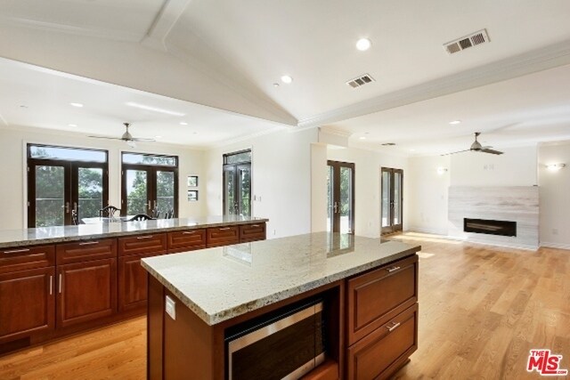 Custom Complete Rebuilt Home in Santa Monica. Located in one of the most sought-after streets in Sunset Park. This is a great house for entertaining with its open and expansive floor plan and approx. 8500 sqft sprawling lot with fabulous views. Enormous patio deck on the upper level overlooking a lush and maniucred backyard. Large open kitchen w/ stainless steel appliances, granite counter tops and custom cabinetry that features excellent cabinet storage. Hardwood floors and recessed lights throughout. Secondary family room in the lower level w/ French doors that open to the patio and yard. Bathroom with shower and 2nd dishwasher, kitchen sink just off lower level patio for convenient cleanup of al fresco dining. Gas fireplaces on both floors. Laundry room on lower level off garage. Large 2 car private garage as well as 2 additional covered spaces + additional parking on the spacious long driveway. Currently partially furnished with 3 new beds, two new wall mounted televistions and 2 dining tables. MLS# 25620553