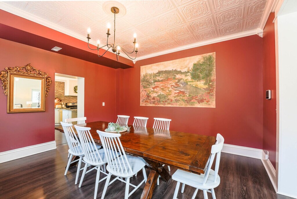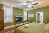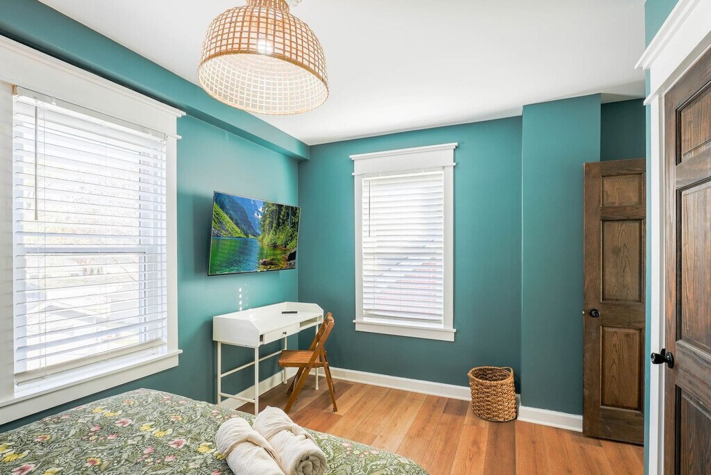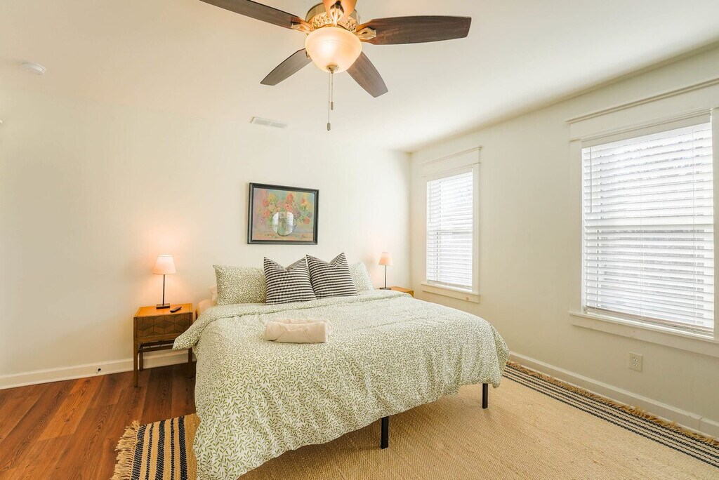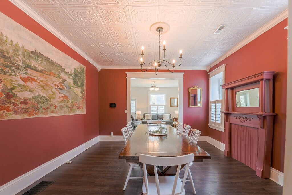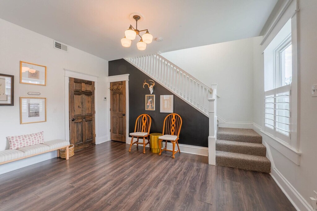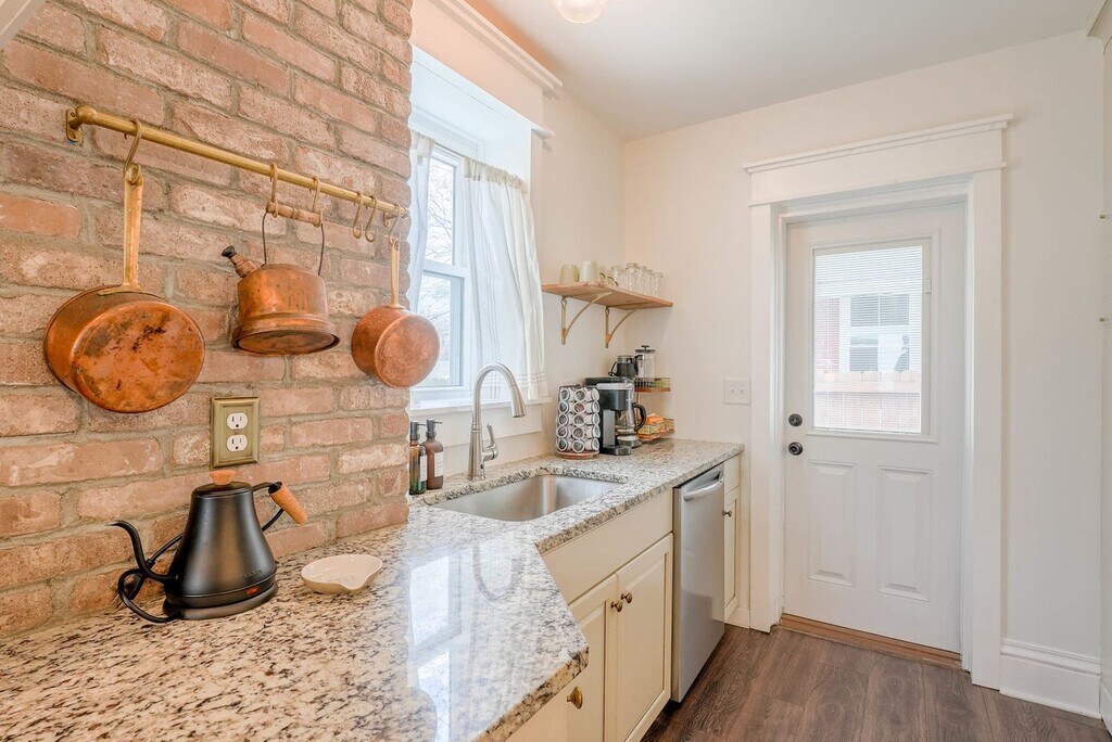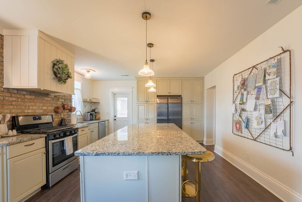 Experience St. Charles from your own historic farmhouse. This charming 19th-century farmhouse offers four bedrooms and three baths, making it perfect for families and groups. Enjoy the twinkle-lit backyard with a fire pit and patio for relaxing evenings. The fully stocked kitchen and spacious dining area are ideal for home-cooked meals. With a dedicated workspace and fast Wi-Fi, this home is remote work-friendly. The pet-friendly fenced yard allows you to bring up to two dogs, with a fee applicable. Located within walking distance to Main Street shops, cafés, and the Katy Trail, this farmhouse offers a perfect blend of vintage charm and modern comforts. Step into your own piece of history in the heart of Frenchtown. This beautifully restored farmhouse blends vintage charm with modern comforts, offering a warm and inviting retreat for up to eight guests. The main floor features a king bedroom next to a full bath with a walk-in shower. Upstairs, the primary suite includes a king bed and a private bath with a clawfoot tub and walk-in shower. Additional bedrooms include another king bed and a queen bed, with a shared upstairs bath featuring a tub/shower combo. The fully stocked kitchen offers stainless appliances, a spacious island, and all the essentials for preparing delicious meals. Gather around the dining table or relax in the cozy living room with plush seating and a smart TV. Your private fenced backyard features twinkle lights, a fire pit, a BBQ grill, and plenty of seating, making it a perfect space for morning coffee or evening s'mores under the stars. Pets are welcome, with up to two house-trained dogs permitted for an extra $75 per pet per stay. Free on-street and off-street parking is available, making it simple to arrive by car. Welcome to St. Charles, Missouri, nestled in the historic Frenchtown district. The neighborhood offers the perfect blend of small-town charm and modern convenience. You're just blocks from Main Street’s cobblestone streets, lined with boutiques, cafés, breweries, and the Katy Trail along the Missouri River. Nearby attractions include the Lewis & Clark Boat House & Museum, unique stores and eateries, Lindenwood University, Family Arena, and Historic downtown St. Louis. The Katy Trail and Missouri Riverfront are perfect for biking, jogging, and scenic strolls. Whether walking, cycling, rideshare, or driving, it’s easy to explore St. Charles and beyond from this central location. The property is about 25 miles from St. Louis Lambert Airport, approximately a 30-minute drive. Main Street and the Katy Trail are both within a short walk. The property is equipped with a noise monitoring device for the comfort of all guests and neighbors. Quiet hours are from 9 PM to 8 AM. Smoking or vaping inside the home is prohibited, and no parties or events are allowed. Respect check-in after 4 PM and checkout by 10 AM times. Starter supplies like toilet paper, paper towels, and toiletries are provided to get you started, but guests may need to purchase additional supplies for extended stays. A personalized door code will be sent before check-in for a smooth arrival. Verification of contact information and acknowledgment of house rules are required before check-in instructions are provided. Enjoy access to laundry facilities in the garage, high-speed Wi-Fi, and a dedicated workspace for remote work. A laptop computer is not included. Registration Number: 2024-23-5799 [SI]