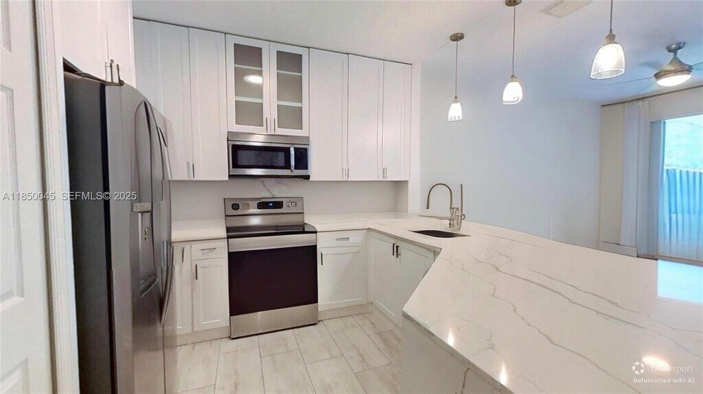 ONLY 2 MONTHS MOVE-IN! Don’t miss your chance to live in this beautifully updated 3-bedroom, 3-full bath townhome in safe gated community. Welcoming bright foyer flows into an open dining area, sleek modern kitchen with quartz countertops & custom bar. Spacious living area with tiled floors, full bath, ambient lighting, & private fenced patio with fan, ideal for relaxing & entertaining. Upstairs convenient laundry room, built-in desk nook, full bath & bedrooms - primary has 2 walk-in closets & en-suite bathroom with double sinks & a soaking tub. Hurricane shutters, 1-car garage + 2 private parking spaces, & ample storage. Enjoy community pool, gym, clubhouse, playground, dog park, & BBQ area. Just minutes from schools, shopping, Baptist Hospital, & Turnpike. Vouchers welcome. Call today! MLS # A11850045