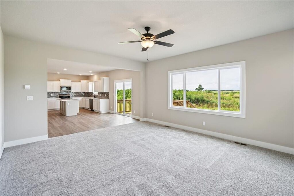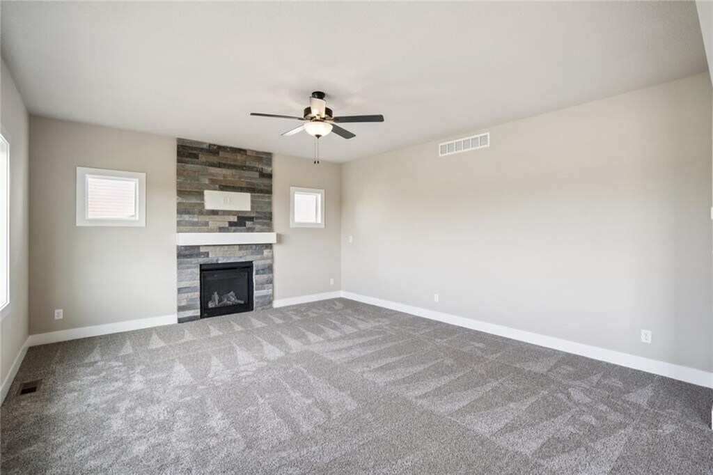 This stylish, spacious two-story home features 4 bedrooms, 2.5 bathrooms, and a 3-car garage, perfectly designed for today's modern lifestyle. Located in Remington Point, one of Waukee's newest and most exciting communities, you'll enjoy convenient access to the upcoming Waukee Civic Campus, offering added value and future growth to the area. You'll love the open-concept layout with a complete stone fireplace anchoring the expansive Great Room. The kitchen has quality finishes, including quartz countertops, a tile backsplash, and a functional island perfect for entertaining. Upstairs, you'll find four generously sized bedrooms, including a primary suite with a private bath and walk-in closet, plus the convenience of second-floor laundry. The daylight lower level is ideal for a rec room, office, or guest suite.