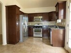 Well kept 3 Bd home with REFRIGERATED AIR!!! Nice curb appeal!! Formal living room. Good size dining area. Open kitchen with granite countertops and stainless steel appliances included - stove,dishwasher,microhood & refrigerator. Spacious zoned primary bedroom with walk in closet with shelves,spacious bath with dual sinks and oversized tub. Ceramic tile in main areas,carpet in bedrooms only. Inviting backyard with extended stamped concrete and easy care artificial grass area. Laundry room with washer & dryer included. Two car garage with opener. AVAILABLE 03/01/2026.