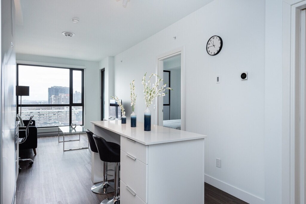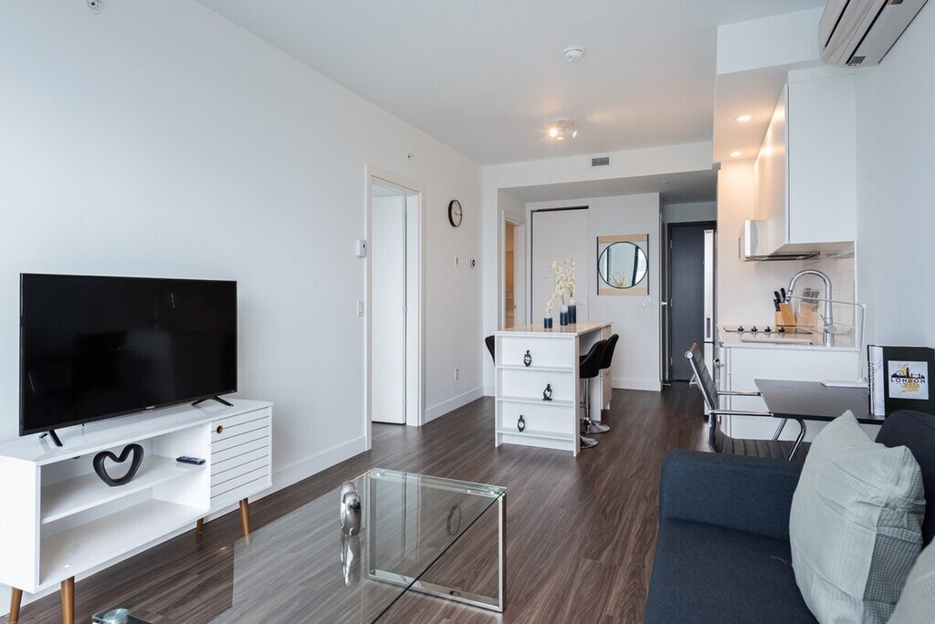 Located in the bustling downtown core of Montreal, adjacent to the Bell Centre, this property epitomizes luxury and practicality, setting a new benchmark for urban living, especially tailored for young professionals, newcomers, and students. Situated mere steps away, residents enjoy easy access to the attractions of the Golden Square Mile and the historic charm of Old Montreal. This development fosters an environment ideal for both academic pursuits and professional development. This new condo is very well located near the Bell Centre, just steps away residents have access to the Golden Square Mile’s attractions. It features 1 bedroom with a queen bed and 1 bathroom. Indoor parking with in/out privileges is available for an additional fee, depending on your length of stay. We offer a variety of cleaning services that include bi-weekly or monthly options, available for an extra charge. Residents enjoy easy access to the attractions of the Golden Square Mile and the historic charm of Old Montreal, making it an ideal location for both academic pursuits and professional development. No parties of any kind or loud noises that can alter the harmony of residents are allowed. No smoking of cannabis, cigarettes, or any kind inside the apartment, balcony, or the building. Care for your home away from home. The apartment offers shared workspaces, a conference room, and a workspace with a view, making it ideal for remote work.