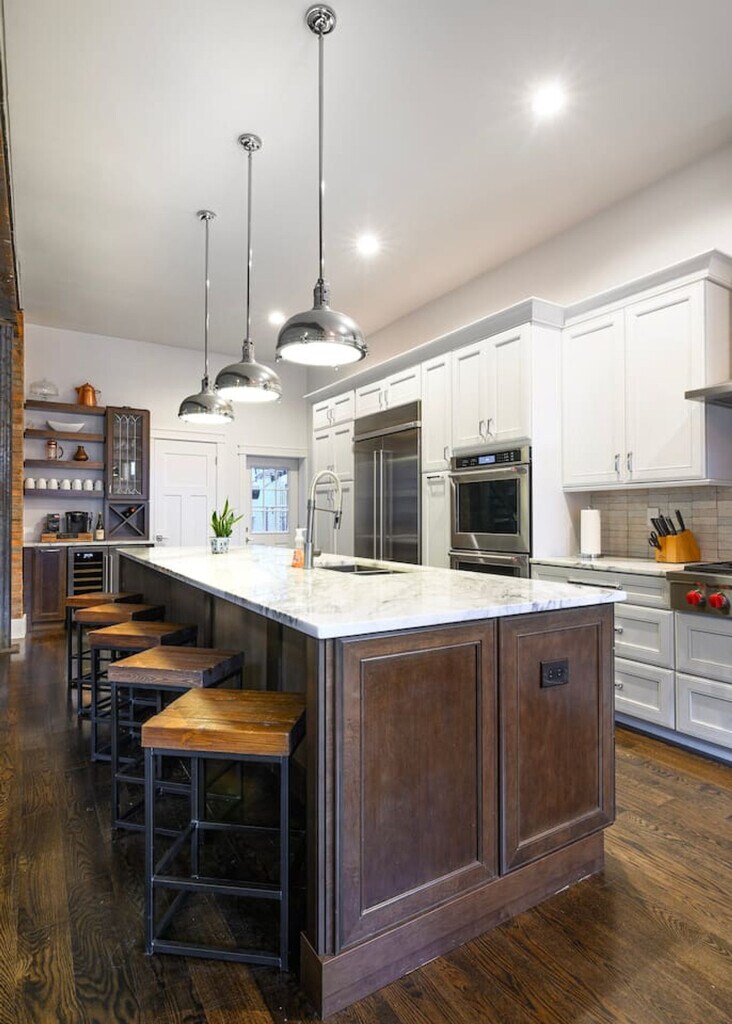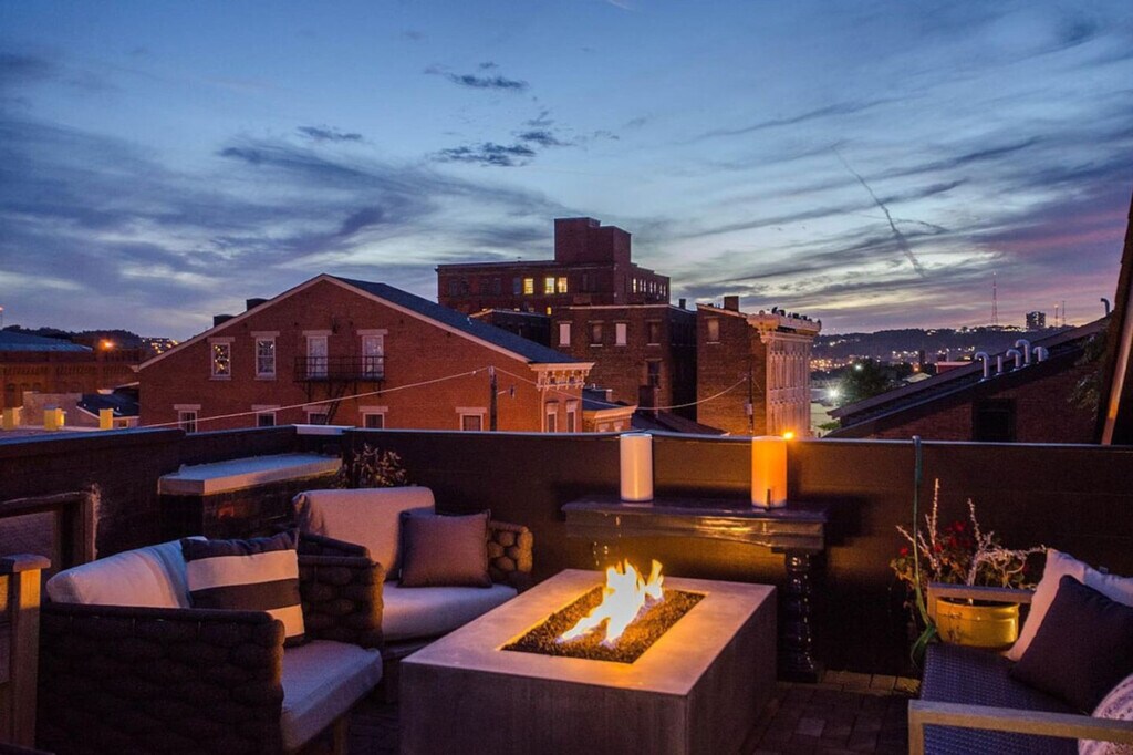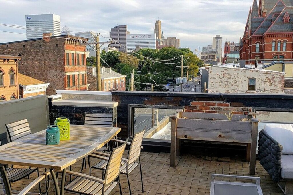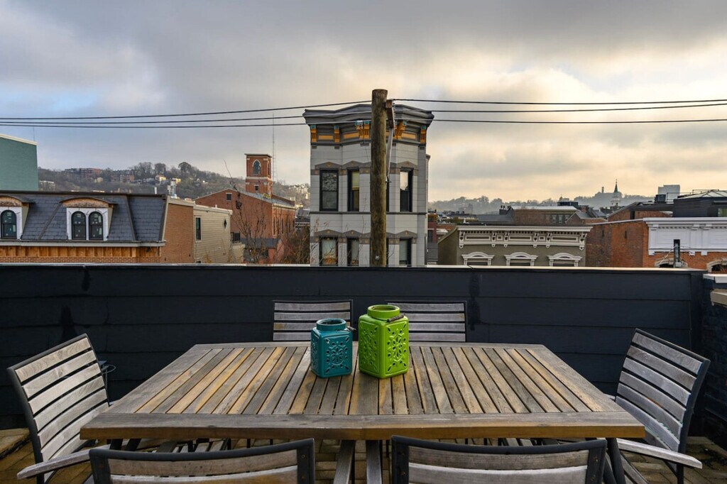 Feel at home in this over-the-top 4-bedroom townhome just steps from Washington Park. Perfect for large or small groups, this property features a huge rooftop patio overlooking Music Hall and the park. There are 3 full and 2 half baths, with private bathrooms for two of the bedrooms. This well-designed and comfortable space is amply stocked. The large, luxury open kitchen, living, and dining room includes WOLF appliances. Enjoy the luxurious clawfoot soaking tub, rooftop patio fire pit and grill, high-speed Wi-Fi, and an in-unit washer and dryer. High-end hotel sheets and pillowcases, gas-powered grill, and central air and heat are also included. There are also two balconies with sweeping city views. One private attached garage spot that fits 1 vehicle and two parking passes for Washington Park Garage, one block away, are available for parking. Furry friends are allowed for a fee. This centrally located property is near everything. It's in Over the Rhine, Cincinnati's food and entertainment district, and steps to Washington Park. A streetcar stop is located one block away, offering a free way to get around all of downtown. This walkable neighborhood features parks, theaters, food, drink, and boutiques. It's a 3-minute drive to downtown and the Central Business District, and just minutes to UC Health, Cincinnati Childrens, and Christ Hospital. Great American Ballpark is a 7-minute drive, and TQL Stadium (FC Cincinnati) is a 3-minute walk. Music Hall is a 2-minute walk. Parties and amplified music are strictly forbidden without advance written consent. Under Ohio Revised Code and Cincinnati municipal code, throwing an unauthorized party is considered criminal trespassing. If you throw an unauthorized party, charges may be pressed for criminal trespass, and you and your guests may be arrested on-site and prosecuted to the full extent of the law. Please observe quiet hours from 9:30 pm-8 am. In the event of a disturbance, one polite request (warning) may be given to come into compliance. If the request is not honored then your reservation will be terminated without refund. Do not smoke or light anything in this property. This includes tobacco, marijuana, incense, candles, hookah, and anything else. Cleanup of human biomaterial (e.g. vomit, defecation) will result in a minimum $300 cleaning fee. A $300 cleaning fee will be charged for cleanup of excessive pet hair. A $300 cleaning fee will be charged for smoking indoors. There is a $200 re-keying fee for unreturned keys. Units found with unreasonable amounts of waste, in complete disorder, and/or “trashed” will be subject to an additional $200 cleaning fee, or actual cost to clean, whichever is higher. If security, fire department, or police fees or other costs arise out of or in connection with your behavior at the property, then you will be billed the cost. The minimum security fee is $300. The property is not wheelchair accessible, and there are no bedrooms on the first floor. [SI]