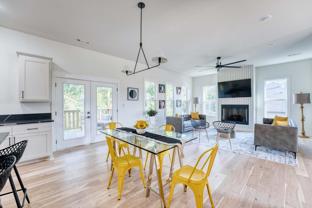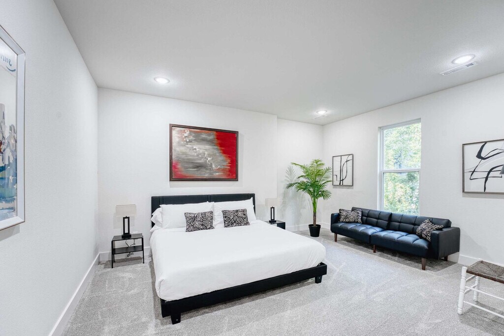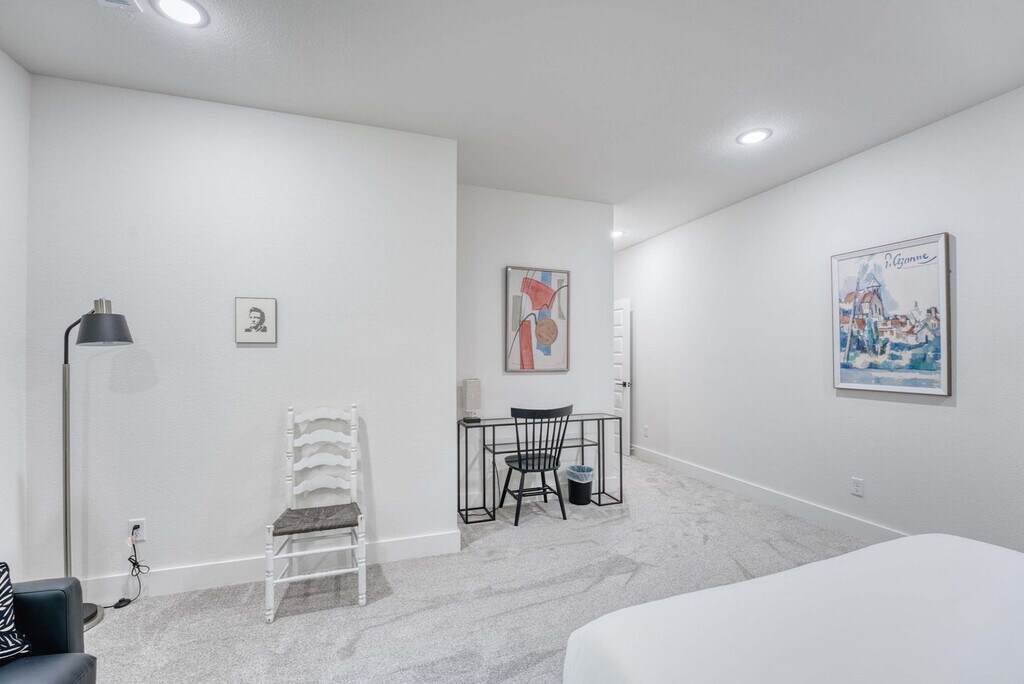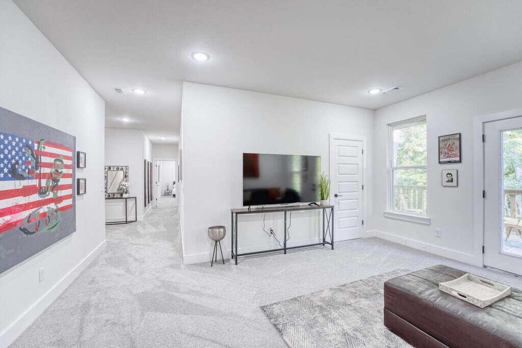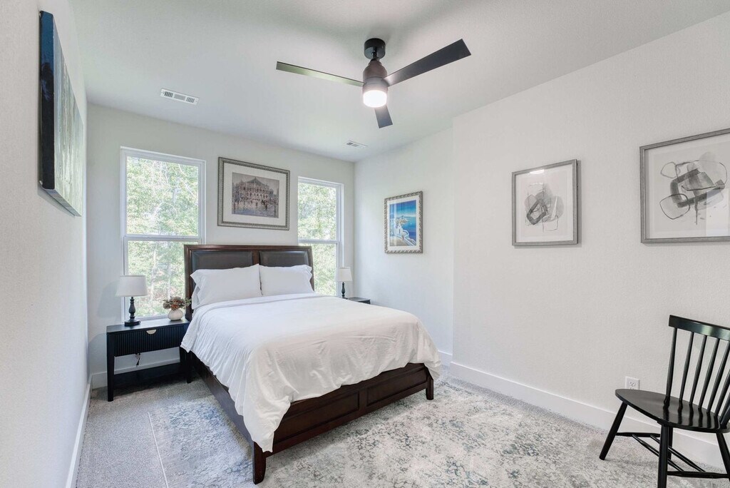 Feel at home in this spacious 5-bedroom new build in Pea Ridge, offering 3.5 bathrooms and two living rooms. This home features a modern design with high-end finishes throughout. The fully equipped kitchen is perfect for groups and families. Enjoy access to a 3-car garage, perfect for vehicles, bikes, and gear. Pets are welcome. Situated in the Big Sugar Golf Course subdivision, this home is ideal for golf enthusiasts. It's just 15 minutes to downtown Rogers and 20 minutes to downtown Bentonville, Crystal Bridges Museum, and top dining. Nearby trails include Baker Hayes, On Ya Left, and Chicken Spur. Northwest Arkansas National Airport (XNA) is about 22 miles away, and downtown Rogers is about 10 minutes away. Quiet hours are from 9 PM to 8 AM. Includes a dedicated office space for work or study. [SI]