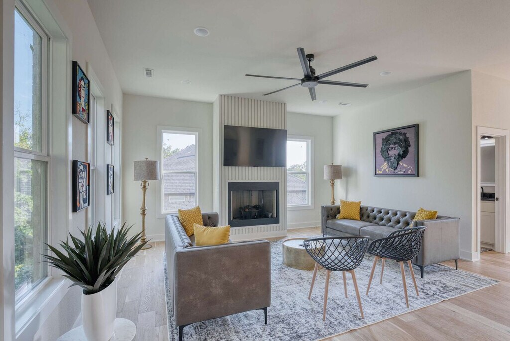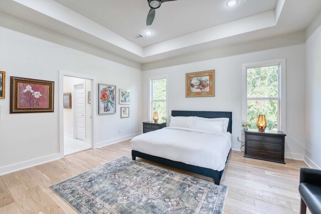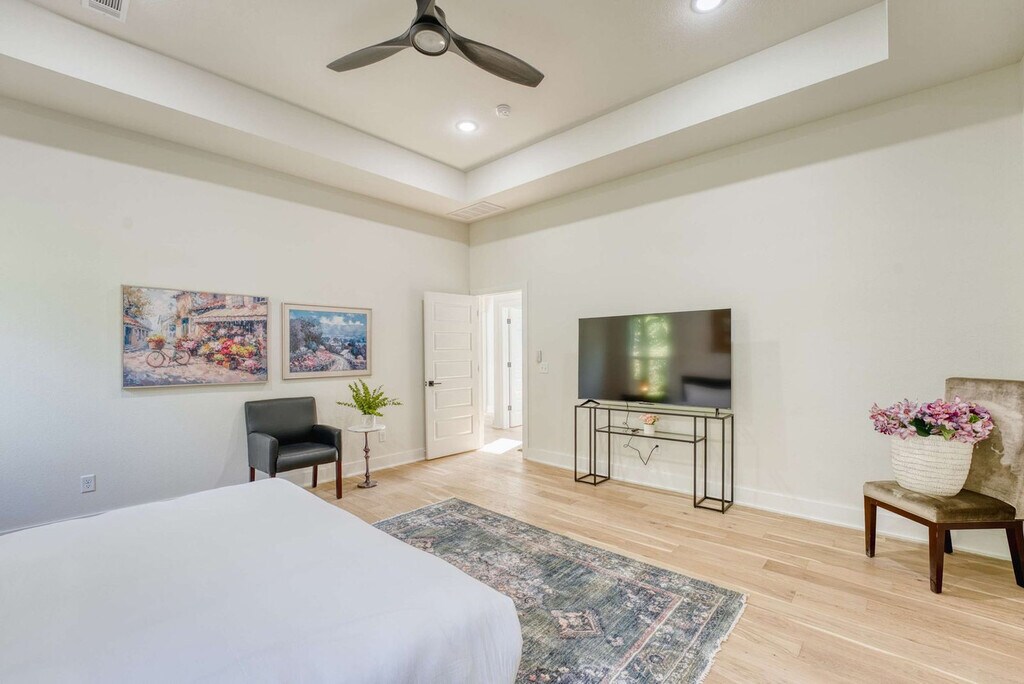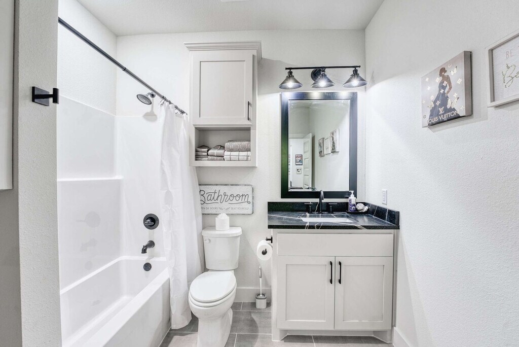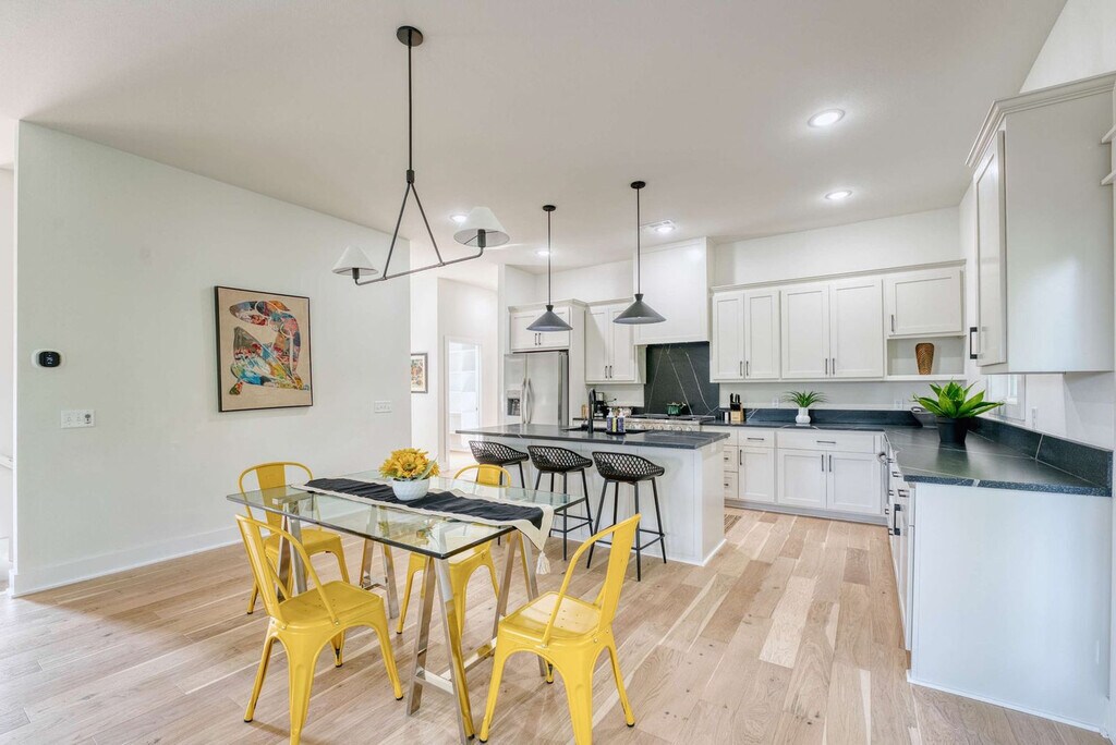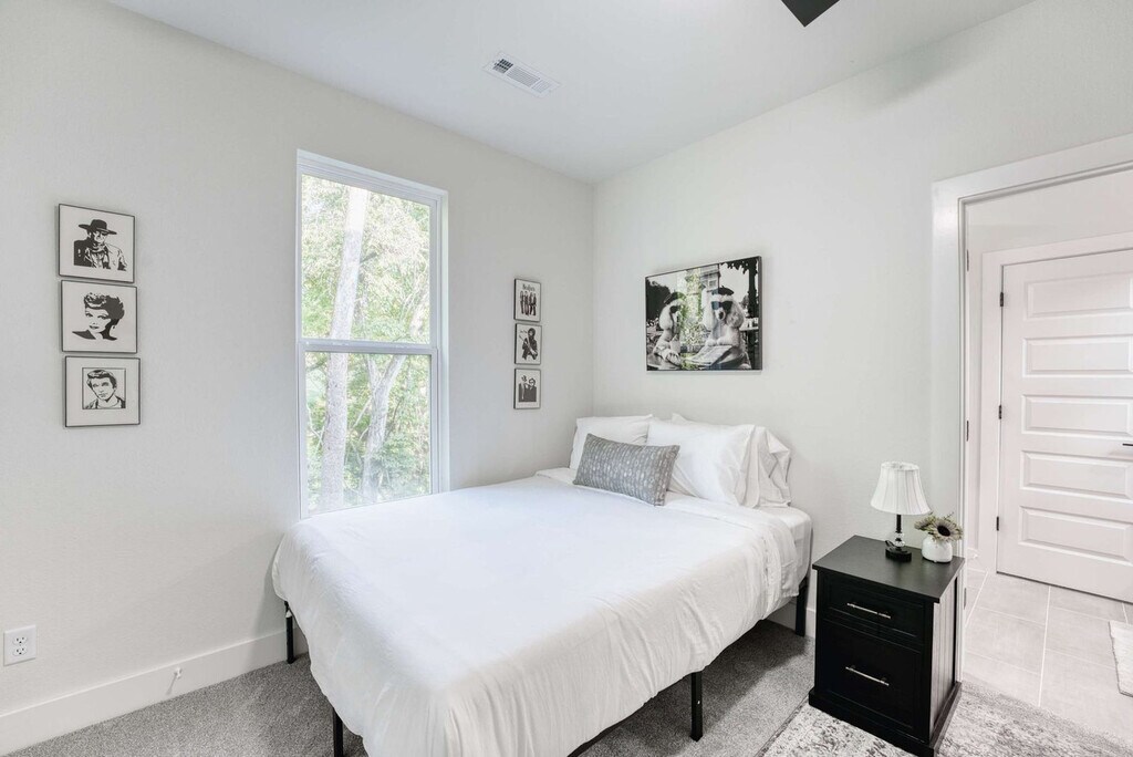 Feel at home in this spacious 5-bedroom new build in Pea Ridge, offering 3.5 bathrooms and two living rooms. This home features a modern design with high-end finishes throughout. The fully equipped kitchen is perfect for groups and families. Enjoy access to a 3-car garage, perfect for vehicles, bikes, and gear. Pets are welcome. Situated in the Big Sugar Golf Course subdivision, this home is ideal for golf enthusiasts. It's just 15 minutes to downtown Rogers and 20 minutes to downtown Bentonville, Crystal Bridges Museum, and top dining. Nearby trails include Baker Hayes, On Ya Left, and Chicken Spur. Northwest Arkansas National Airport (XNA) is about 22 miles away, and downtown Rogers is about 10 minutes away. Quiet hours are from 9 PM to 8 AM. Includes a dedicated office space for work or study. [SI]