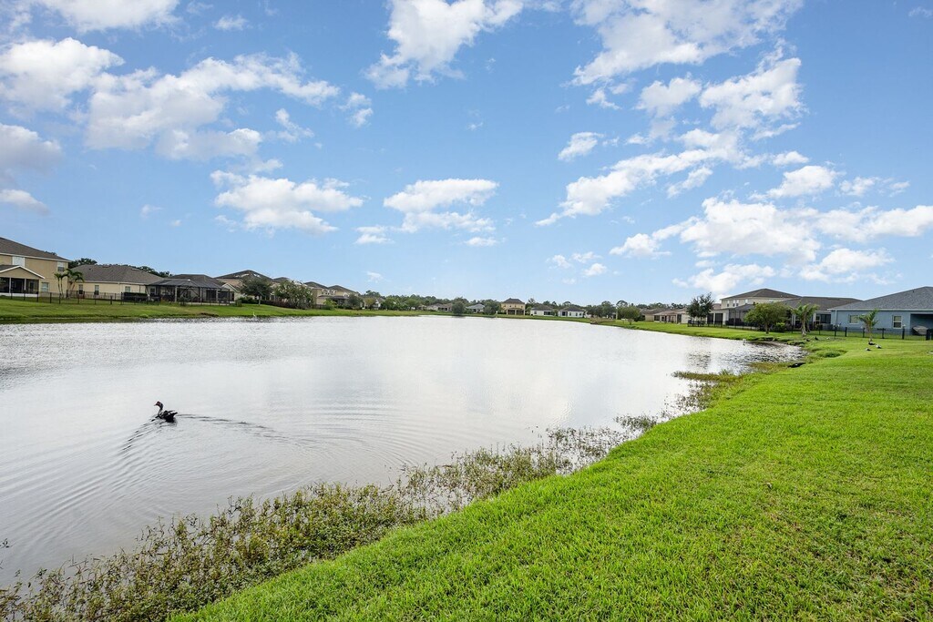 Newer Construction Home situated on the community lake, 3 bed 2 bath home, with a separate space off the living room that could be used as an office space, or 4th bedroom. Large walk in closet in master bedroom and a shower in the master bath big enough to fit 5 people in at one time. Tile and Brand new carpet through out. Living room is wired for home entertainment system, tons of cabinet space in the kitchen with newer appliances Oversized paver back patio over looking the lake, community playground and pool! make your appointment to view today.