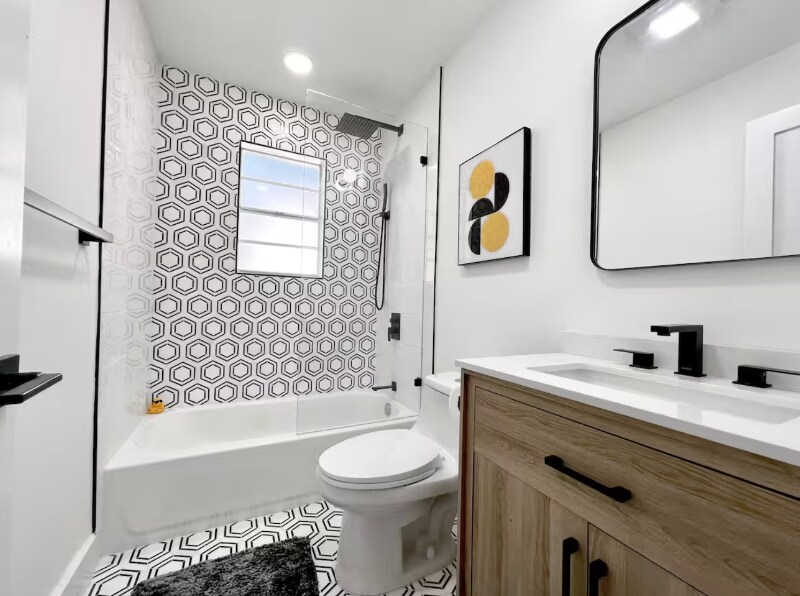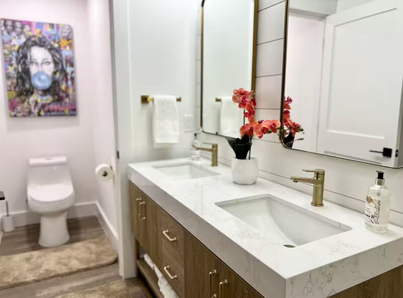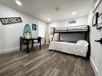 Property Id: 2346237 Ideally located just 8 minutes to EOD, 15-20 minutes to Eglin AFB, and 10 minutes from Destin's iconic white-sand beaches and crystal-clear waters, this completely renovated 3-bedroom, 2-bath Mid-Century Modern home blends retro charm with modern luxury. Set in a private setting with bay views, this 1,600 sq ft home features high-end finishes, upgraded amenities, and a playful POP ART aesthetic that makes it truly one of a kind. Inside, the home offers two distinct living areas, each with its own vibe. One space is perfect for relaxing, visiting, listening to music, or reading, while the sunken living room serves as a cozy TV lounge complete with a candle-lit fireplace. The fully remodeled kitchen is fully loaded with all new appliances, a custom island, modern cabinetry, and everything needed for cooking and entertaining. Outdoor living is just as impressive. Enjoy morning coffee or evening wine on two porches, a large fully screened side patio with vintage dining table and string lighting, & a custom built-in propane grill in the private, fully fenced backyard. The front yard is oversized & ideal for RV, boat, or water toy parking, & you're just 1 mile from the boat launch & local beach. Bedrooms & Baths All bedrooms are large & thoughtfully themed: Primary Suite: King bed, private bath with walk-in shower, double vanity, huge walk-in closet, wall-mounted TV, blackout curtains, POP ART theme Bedroom 2: Queen bed, large mirrored closet, blinds and curtains, music-themed decor Bedroom 3: Bunk room with double bottom bunk and single top bunk, large mirrored closet, surf-themed decor (Bunk beds can be swapped for a king bed if desired) Additional Features: Fully equipped kitchen Laundry room with washer, dryer, drying rack, vacuum & brooms Utilities included, linens & towels provided Central AC/Heat This home is perfect for those seeking privacy, style, and proximity to the best of Destin and the Emerald Coast whether for work, play, or extended stays.