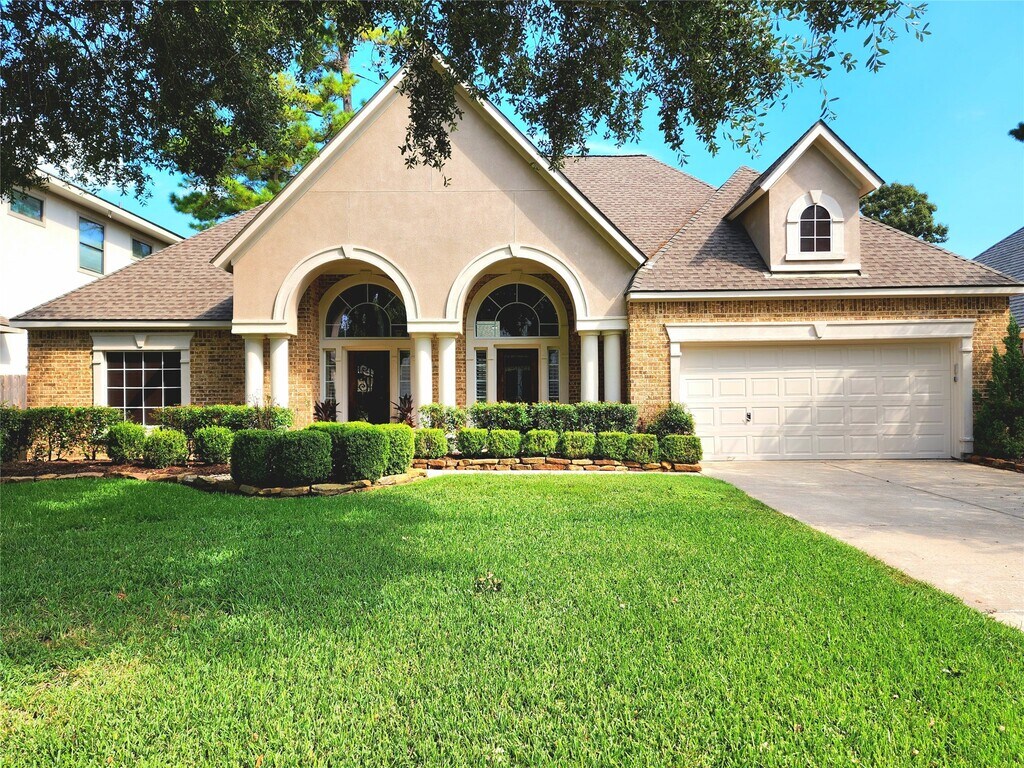 Fabulous One Story with gorgeous curb appeal in a small GATED COMMUNITY! Iron Accent Door leads into the beautifully tiled formal dining and living rooms. Carpet only in Beds Two and Three. Soaring Vaulted Ceilings,Columns,Art Niches,and 4''Plantation Shutters enhance this inviting space. Custom Elegance throughout. Spacious Primary Bedroom with amazing EnSuite Bath inclusive of dual vanities,separate shower and jetted tub. Exceptional closet space! Open Concept Island Kitchen with Granite and SS Appliances,surrounded by an expansive breakfast bar open to the living area. Extended Patio to enjoy the outdoor garden. Professionally landscaped & Full Sprinkler System. Epoxy Garage Floors and Garage Refrigerator for your use. Easy Access to Hwy 249/2920 and all Tomball has to offer! MLS# 66307578