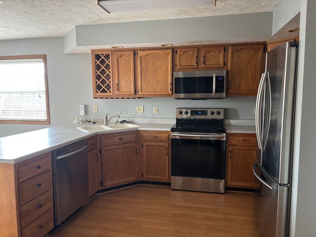 3B2B ranch home located in West Lafayette Whole house wood flooring, living room features with daylighting roof. SS appliances. Fenced in yard.
