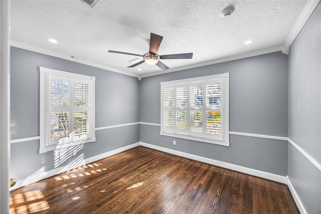 Located in the highly desirable Oak Forest neighborhood,this stunning 2 bedroom* / 2 full bath home features a modern open-concept interior highlighted by a trendy kitchen with bold blue cabinetry,high-end stainless steel appliances,and an oversized wrap-around entertainment counter perfect for hosting. Rich hardwood floors,classic wainscoting & plantation shutters give the home character and the main living space layout offers a seamless flow between the dining and lounge spaces. *3rd room (without closet) could be a playroom or child's bedroom. A sun-drenched (extra) flex room with built-in shelving provides the perfect setup for a private home office. Single-car attached garage is still a garage - not converted to a room! The property’s curb appeal is matched by a large backyard oasis,complete with an oversized covered patio and a private gazebo designed for premier outdoor living and entertaining. Landlord to maintain yard. Schedule your showing today; this one won't last! MLS# 40641456