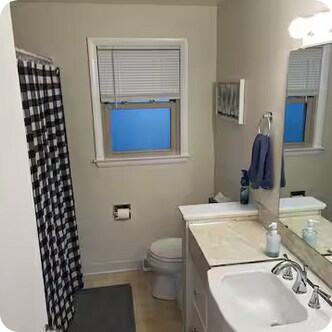 Enjoy this Green Bay home located in walking distance of Lambeau Field for a Packer weekend, Resch event, or even a long term stay. Recently remodeled from top to bottom, property offers a fresh & modern aesthetic. Enjoy the comfort & relaxation of the attached screen porch, providing an ideal spot to unwind & enjoy the surroundings. Partially finished LL adds to the appeal of this home, featuring a bar area for entertaining w/ exposed floor joists for the ceiling. The space: Ranch style home that offers all 3 bedrooms on the main level with the full bathroom. The bonus basement space offers a bar type setup with a TV along with a half bath. Guest access: Guests will have the entire property to themselves.