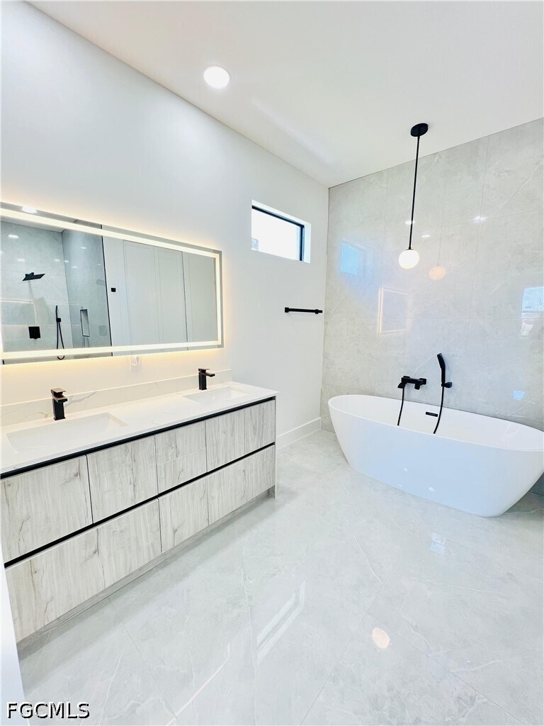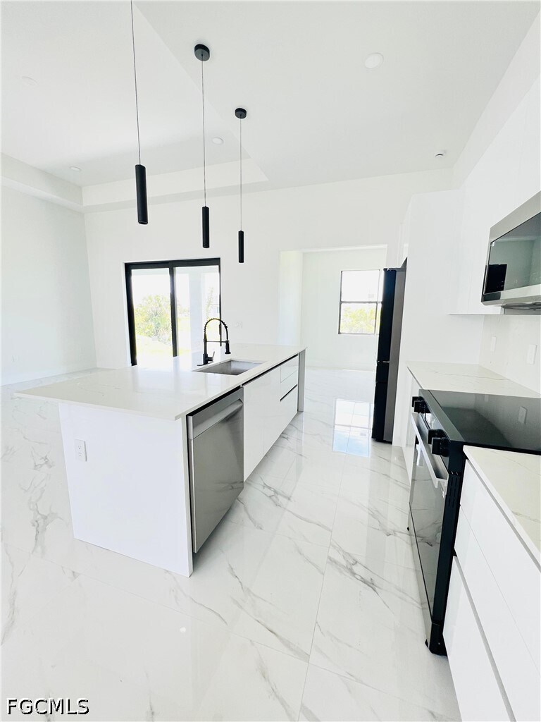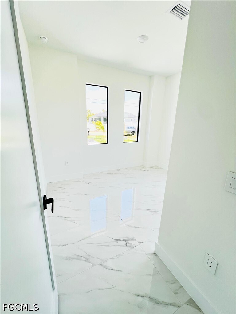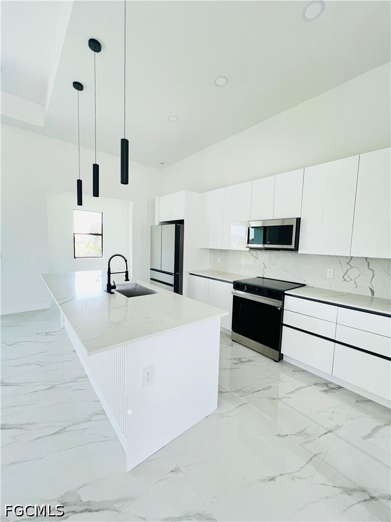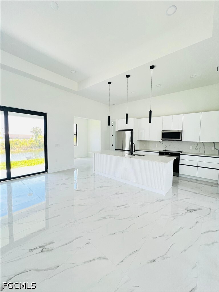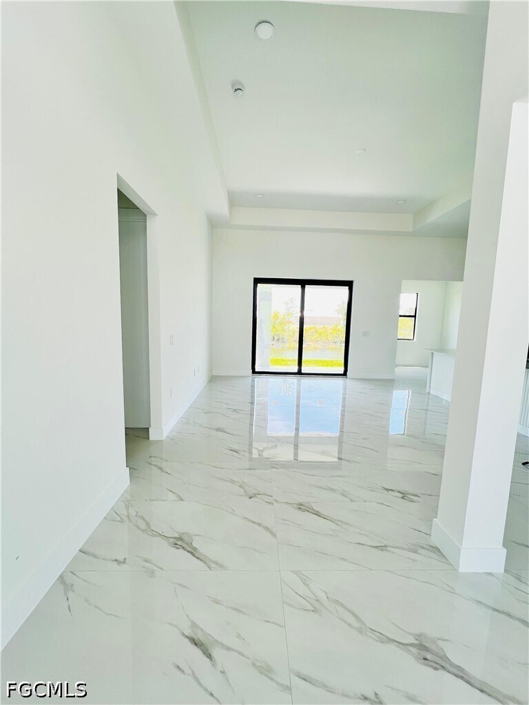 Brand-new construction completed in 2026,this beautifully designed residence offers 3 bedrooms,3 full bathrooms,and a versatile flex space ideal for a home office,playroom,or additional living area. The open-concept layout showcases modern architectural design throughout,featuring sleek finishes,European-style cabinetry,and thoughtfully curated details that elevate everyday living. The kitchen is equipped with stainless steel appliances,modern countertops,and a built-in wine cooler—perfect for both daily use and entertaining. The spacious primary suite offers a spa-like experience with a walk-in shower,soaking tub,and dual walk-in closets,providing both comfort and functionality. Ample storage is found throughout the home. Enjoy indoor-outdoor living with a covered lanai overlooking a peaceful canal view,creating the perfect setting to relax or entertain. The property also features professionally designed front landscaping that enhances its curb appeal. Connected to city utilities and ideally located just minutes from a commercial plaza with Publix,dining,and everyday conveniences. With direct access to Del Prado Blvd,this home offers an easy commute to schools,work,and entertainment throughout the area.