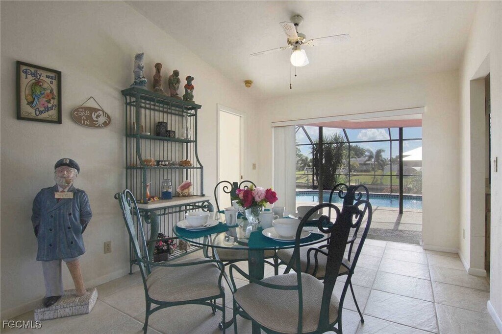 This is a VACATION RENTAL. Owner will not consider an annual rental. Weekly rentals permitted. If you are looking for a vacation home with an electric heated saltwater pool that is right in the center of SE Cape Coral on a Gulf access canal in a quiet and lovely neighborhood,Villa Delieta is just the right place. It is only 5-10 minutes away from many restaurants,bars,and an impressive diversity of shopping opportunities,and offers a relaxed and cozy atmosphere with 3 bedrooms,2 bathrooms and 1,800 SF living area. The home entrance leads right into the den with its comfortable recliner chairs,flat-screen TV,and desk. The great room offers two leather couches and a spectacular view of the lanai/pool area through the wide glass sliding door. The fully equipped kitchen offers anything needed to cook your meals and has a small breakfast bar with seating for two. There is another dining area with room for four next to the kitchen. The master suite offers a King-size bed and has direct access to the lanai. The attached bathroom has a shower,two separate sinks,and a bathtub. The two guest bedrooms on the opposite side of the house share the guest bathroom and feature a Queen-size bed in one and King size bed in the other. Next to the extra-wide kitchen window,you will find an outdoor dining table for six under the canopy roof and a gas grill. The lanai and sundeck face South and offer ideal conditions to work on your tropical tan and admire the colorful Florida sunsets. Well maintained ornamental shrubs create privacy for the pool/lanai area. Two sun loungers and,of course,the electric heated saltwater pool will help you to de-stress. You can also spend quiet hours at the sun deck down at the canal and work on an incredible Florida tan. Villa Delieta is a great place to catch almost any fish out in the Gulf of Mexico. To top it all off,you can bring your boat,as the house has access to the Gulf of Mexico via the extensive canal system of Cape Coral. Villa Delieta has everything you may wish for a perfect Florida vacation!