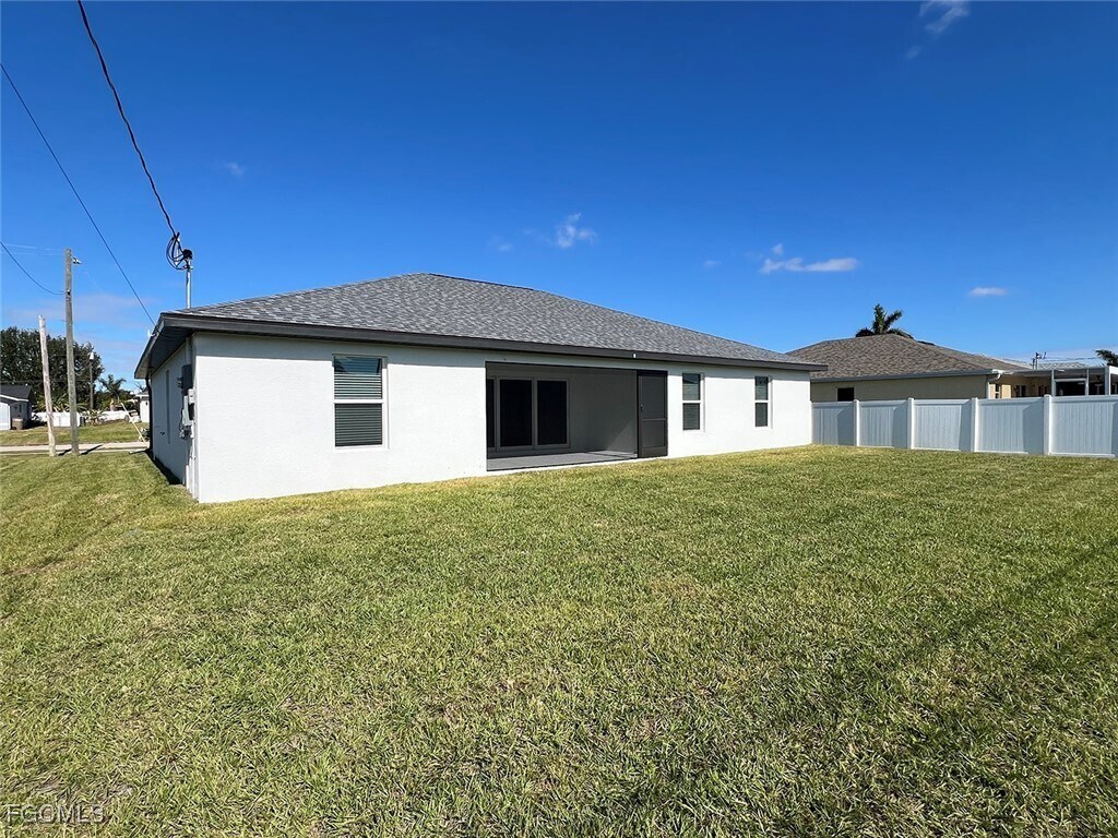 Experience luxury living in this stunning home in Cape Coral,FL! This 4-bedroom,2-bathroom residence is a new build,offering a fresh and pristine atmosphere. Perfect for those seeking a tranquil retreat. The open-concept floor plan features a spacious living area,modern kitchen with stainless steel appliances,and ample natural light. The master suite includes a walk-in closet and an elegant en-suite bathroom. With easy access to all the amenities Cape Coral has to offer,this home is a true gem.