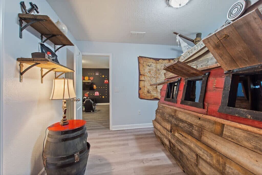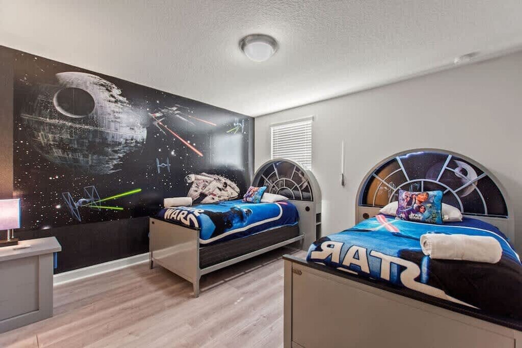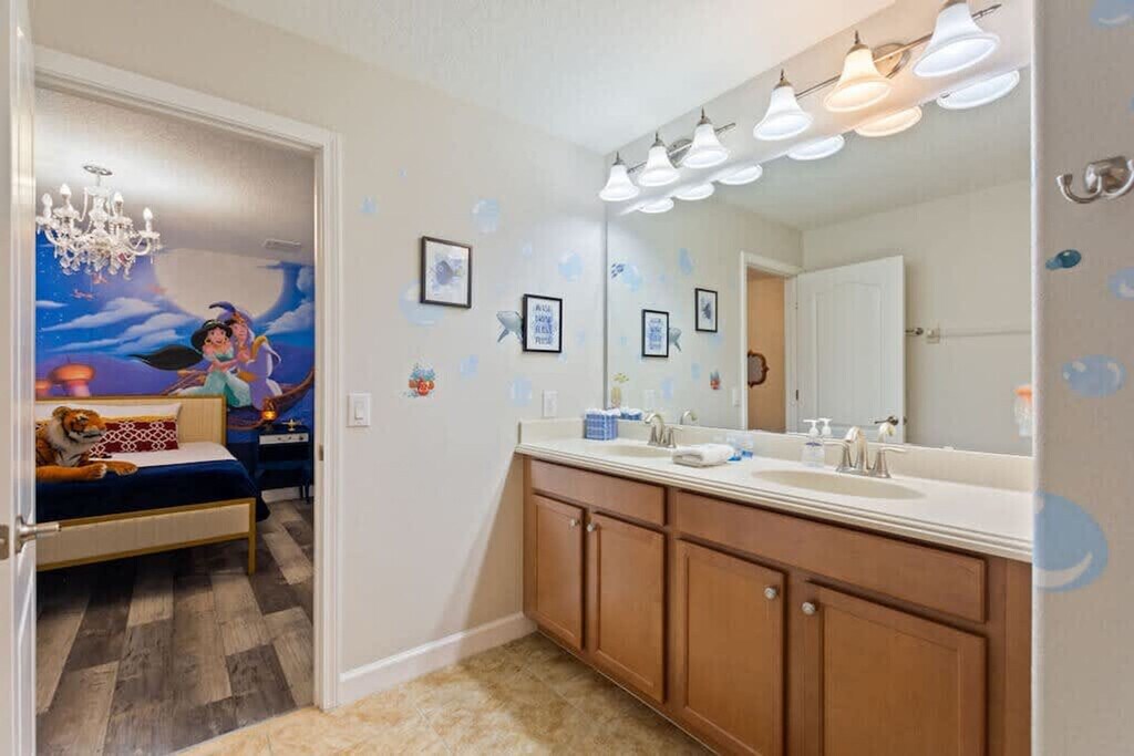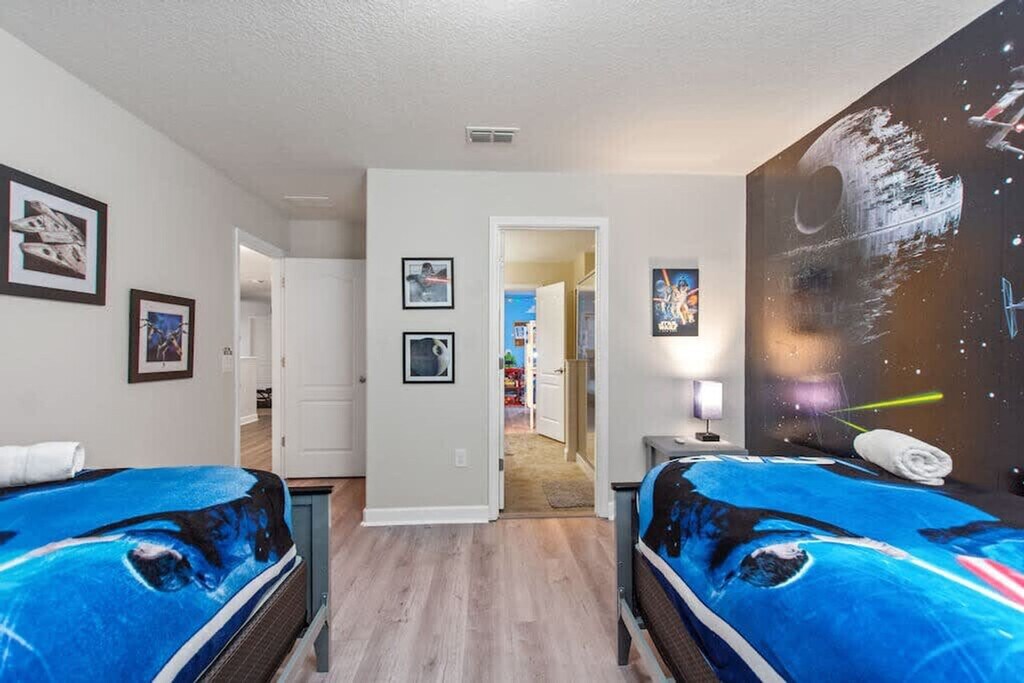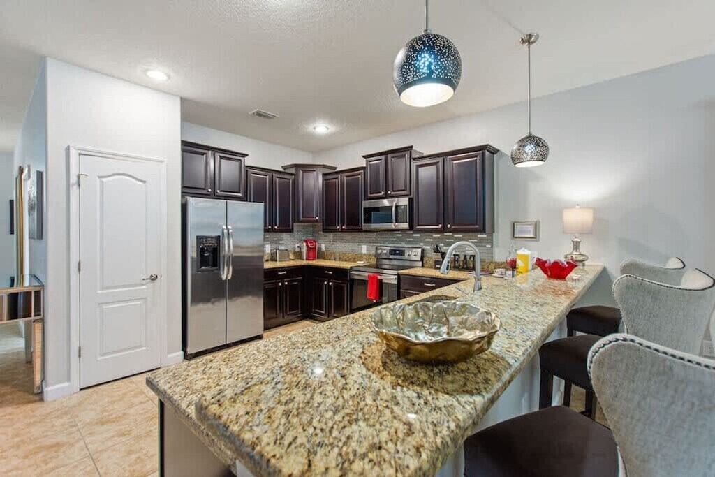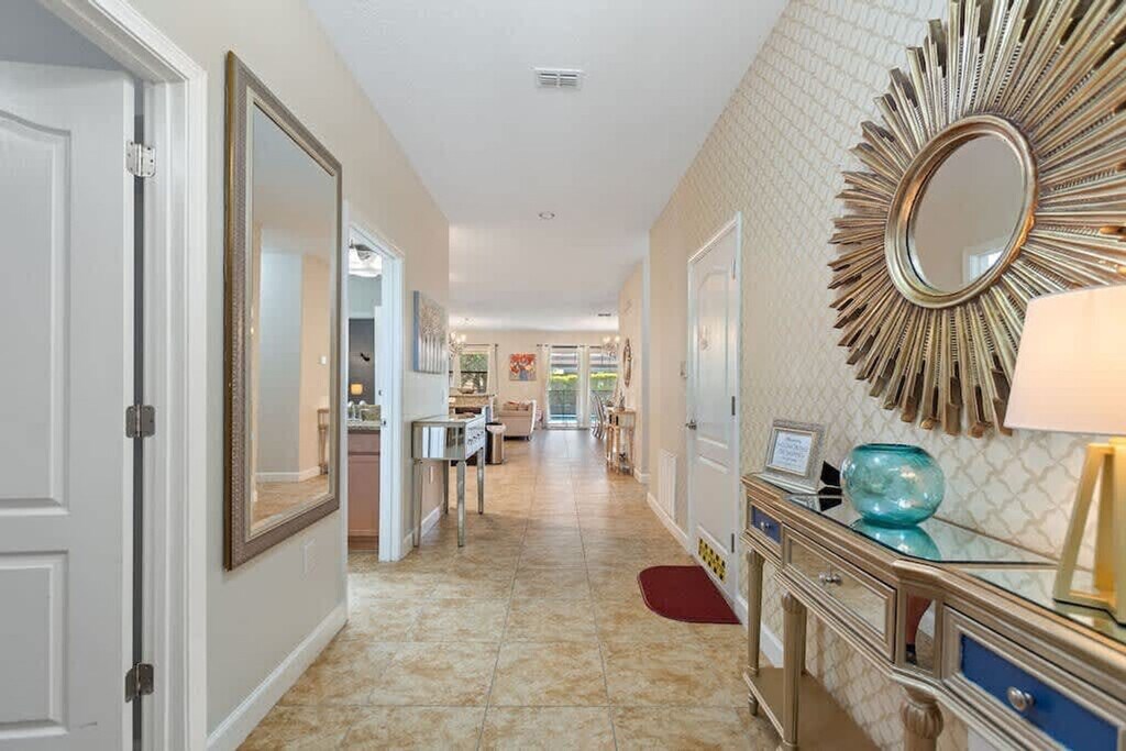 Feel at home in this luxurious 8-bedroom villa in Davenport, perfectly situated close to Disney World. This villa promises a magical Florida vacation experience and is ideal for families or groups seeking a spacious retreat. Sprawled across 3,900 sq ft, this villa promises a comfortable and luxurious stay. The open-concept living area welcomes you with its chic décor and large Smart TV, making it a perfect hub for family activities. Each of the eight bedrooms is a haven of serene relaxation, outfitted with plush bedding and Smart TVs. Complementing them are five spa-inspired bathrooms. The chef’s kitchen is equipped with stainless steel appliances. The private patio and pool area awaits with a BBQ grill and lounge chairs. Pool heating is available upon request before arrival for $45 per day. Nestled in the heart of Central Florida, this villa is located within the exclusive Villas at ChampionsGate Resort, a gated community designed for luxury, comfort, and endless fun. At the center of it all is the Oasis Clubhouse, offering a resort-style pool with water slides, lazy river and splash park, Tiki bar and The Grille restaurant with poolside service, movie theater and game room, volleyball courts, playground, tennis clubhouse, 18-hole golf course plus 36 more designed by Greg Norman, and the David Leadbetter Golf Academy. The villa is strategically situated a short drive from Disney’s Magic Kingdom, Epcot, Animal Kingdom, and Hollywood Studios. Posner Park Mall and a vibrant array of bars and restaurants are also nearby. Self check-in is enabled with a smart lock. Smoking, pets, parties, and events are prohibited. Includes a dedicated workspace and a personal gym space. [SI]