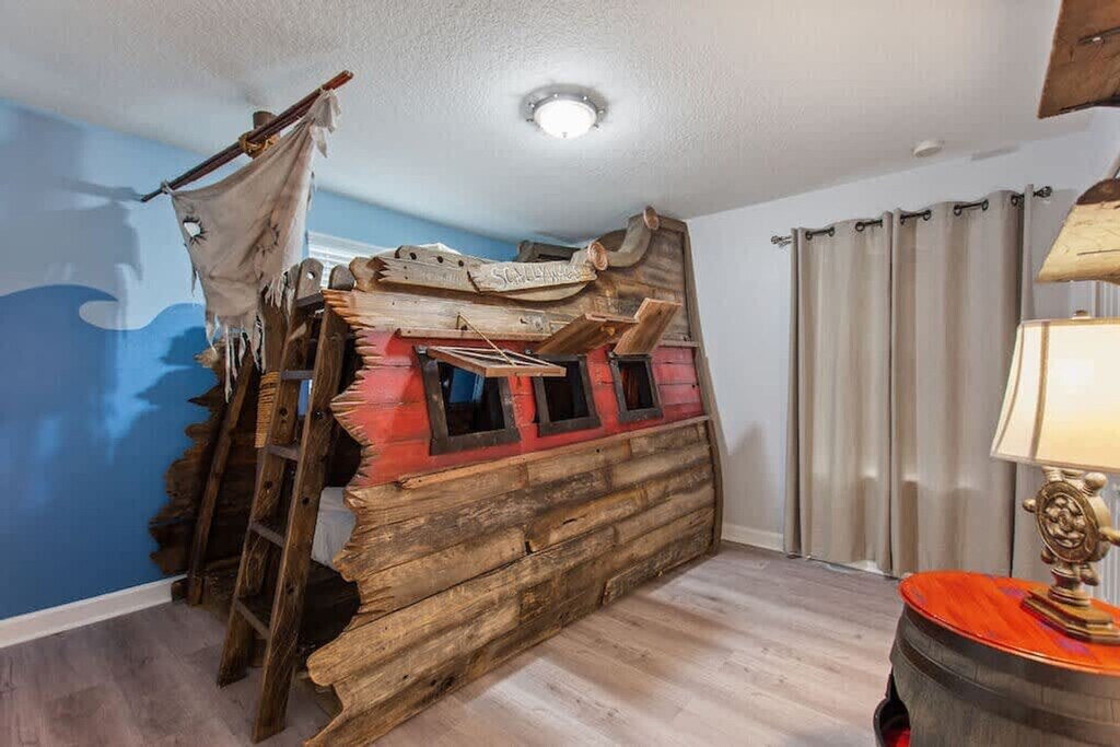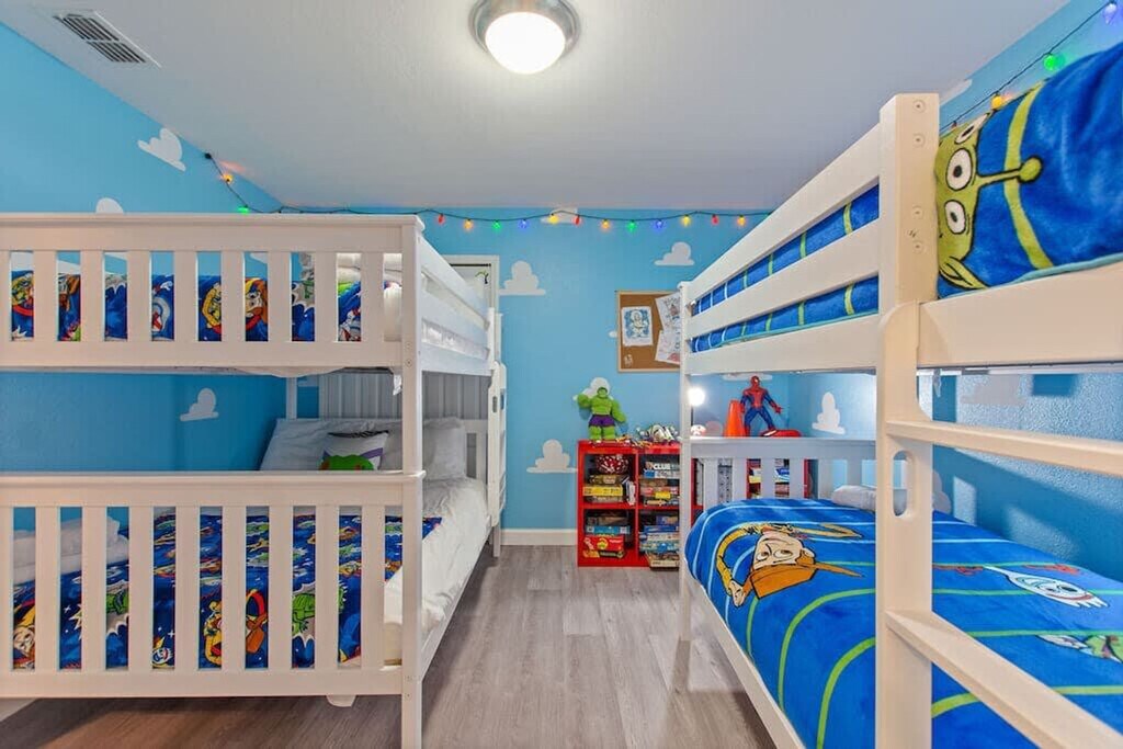 Feel at home in this luxurious 8-bedroom villa near Disney, offering over 3,900 sq ft of comfort and style. Each room is equipped with Smart TVs and plush bedding, while the five modern bathrooms provide spa-like relaxation. The open-concept living area features a large Smart TV and seamless access to a private pool, transforming into a cozy family home theater by night. The villa also includes a gym area and dedicated workspace, perfect for staying active or productive during your stay. The chef’s kitchen is fully equipped with stainless steel appliances and ample counter space, ideal for cooking and connecting over shared meals. Step outside to your private patio and pool area, complete with a BBQ grill, lounge chairs, and space to dine under the stars. Optional pool heating is available upon request before arrival for $45 per day. Nestled in the heart of Central Florida within the exclusive Villas at ChampionsGate Resort, this villa offers luxury, comfort, and endless fun. The 20,000+ sq ft Oasis Clubhouse features a resort-style pool with water slides, a lazy river, splash park, air-conditioned cabanas, a tiki bar, a restaurant, a state-of-the-art fitness center, a movie theater, a game room, volleyball courts, a playground, a tennis clubhouse, and an 18-hole golf course. Conveniently located just minutes from Disney World, Universal Studios, and Orlando’s top attractions, with free parking and a complimentary resort shuttle available. No smoking, no pets, and no events or parties are allowed. The villa offers essentials like shampoo, toilet paper, and cleaning supplies for your convenience. Check-in and check-out are handled smoothly through direct communication, ensuring a seamless experience. Includes a dedicated workspace for remote work-friendly stays. A laptop computer is not included.