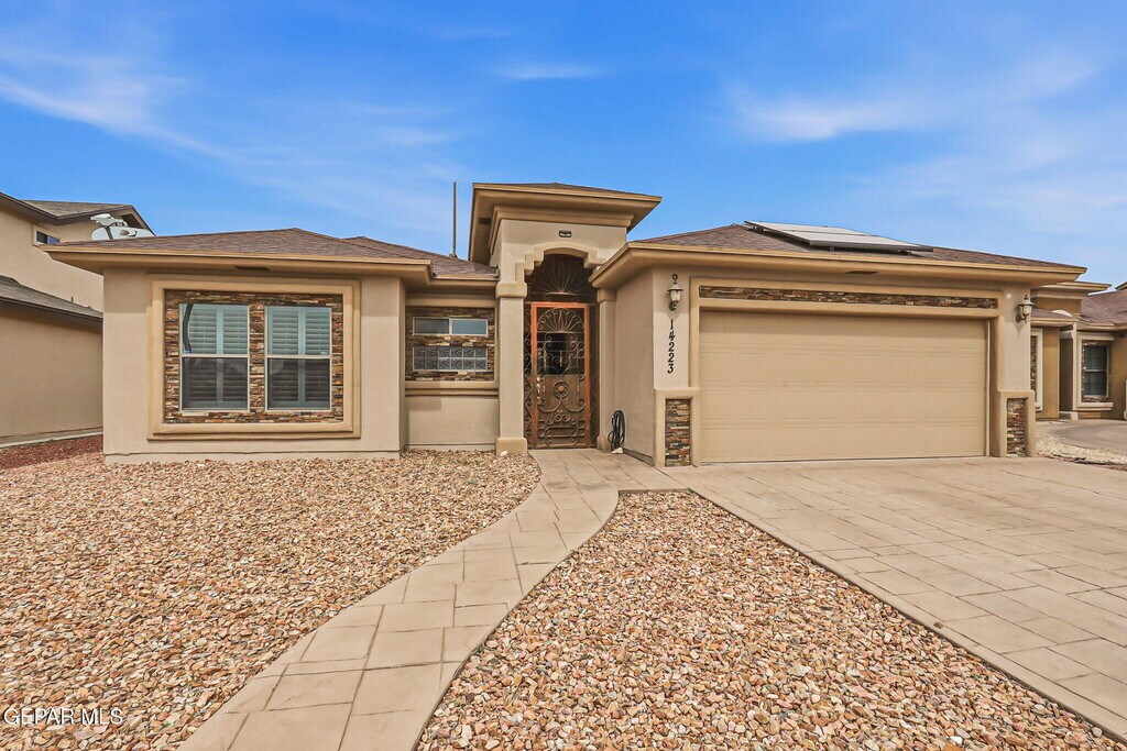 *SOLAR PANELS* Stunning single-level home in Far-East El Paso. Open concept,specious living area and ample dining space. Granite countertops and stainless steel appliances in the kitchen. Charming stone accents,shutters throughout,refrigerated air,and solar panels for minimal electric bill! Landscaped front and backyard. Close to shopping,schools,and Ft. Bliss. Pet friendly (limit 2),breed restrictions apply. **Listing may be subject to errors,omissions or changes without notice. All information has been supplied to Broker by another party and Broker has no reason to believe it to be false. Broker makes no expressed or implied warranties regarding property condition. Property is 'as-is'. All are instructed to verify all information independently prior to taking any action.**