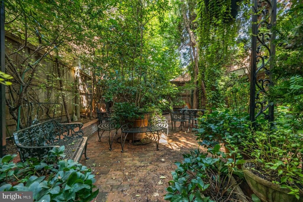 This sun filled warm and inviting federal home sits up high off the street and boasts 9 foot + ceilings, beautiful hardwood floors and built ins galore. The main level offers a spacious double living room with original wide plank wood floors, full library with cabinetry (could be used as a third bedroom) and a powder room. A classic English basement kitchen with dining room (all opening to a brick patio lush garden) provide for an intimate and warm atmosphere. The kitchen has Subzero and top of the line appliances and leads to a laundry room with new washer and dryer, a den and a powder room. On the upper level one will find two bedrooms and two full baths plus a large spacious loft (formerly another bedroom years ago but opened up to use as a family room). Custom cabinetry abounds allowing for more than ample storage. In move in condition with freshly painted interiors and more than spacious room sizes. A total of two to three bedrooms plus large loft, two full baths, two powder rooms and a den, formal library(or third bedroom), living room and dining room. Garden maintenance is paid by owner. Email agent for an appointment to tour.