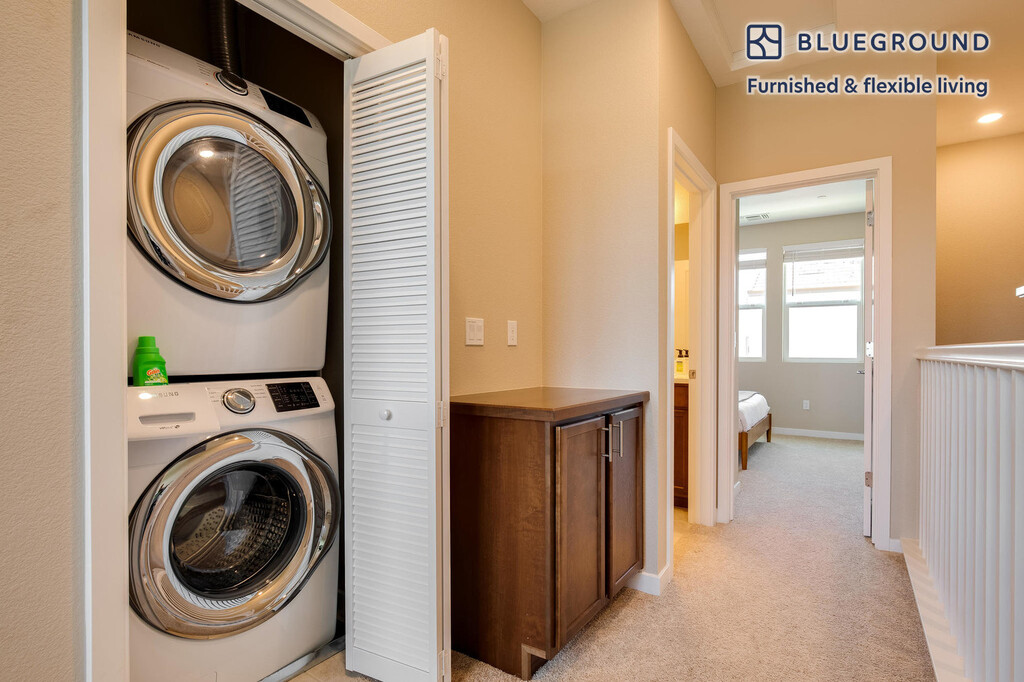 Show up and start living from day one in Milpitas with this pretty one bedroom Blueground townhouse. You’ll love coming home to this thoughtfully furnished, beautifully designed, and fully equipped Milpitas home. (ID #SFO1639) The advertised rate of $2,940/month is the lowest available price, based on a 6 month(s) and 4 day(s) stay with a move-in date of July 5, 2026. If you’re looking for a 1-year stay, the rate is $3,190/month. Rates vary depending on the duration of stay, season, and other parameters. For exact pricing and additional pricing components, please visit our website and enter your desired move-in and move-out dates. The rate is applicable when billed upfront; it can be higher if billed in multiple payments. Brokers are welcome to reach out. Were you looking for an unfurnished lease? Try Blueground instead and upgrade from unfurnished to furnished living: - Furnished at rates comparable to unfurnished - No setup or furniture costs - save thousands - Move-in ready - save time, just bring your suitcase Designed with you in mind As with any Blueground townhouse, you’ll find a thoughtfully designed space complete with beautiful furniture and a fully equipped kitchen in this one bedroom property. And, thanks to our superior quality mattresses, luxury linens, and towels, you can relax knowing you’ll always feel comfortably at home. When you’re ready for some fun, you can take in the Milpitas vibes or bring the entertainment to you with the premium wireless speaker or smart TV. This townhouse also offers in-townhouse laundry. Sleeping arrangements Queen Bed, 63in/160cm Amenities Building amenities unique to this one bedroom townhouse include an on-site: - Dryer - Washing machine - Parking - Pets allowed Arrival and ongoing support The entire townhouse is yours to enjoy! Throughout your stay, you’ll have access to our Client Experience team through the Blueground App. You can schedule additional cleanings, submit maintenance requests, and view our neighborhood recommendations with just a few taps. We’ll share all details upon confirmation of your stay. Ideally Located This furnished home is located in Milpitas in Santa Clara County, just north of San Jose. Set between the two major freeways (I-880 and I-680) of Silicon Valley, Milpitas is prized for its convenient location and is home to Cisco, Lifescan, SanDisk, and several other major tech companies. The city is diverse and has a well-educated population and excellent schools, making it a good choice for families. Milpitas is home to great shopping, including notable Asian markets and The Great Mall of the Bay Area. While most residents rely on cars to get around, a light rail line opened in 2004, and an extension of BART is planned for the near future. Milpitas is progressive and conveniently located, making it an ideal Bay Area location. Other things to note This Blueground townhouse has flexible lease options, allowing you to book it for one month, a year, or more. Pets are welcome, though weight limits and breed restrictions apply and may incur fees. Parking is offered based on availability and is subject to a fee. Please keep in mind that this is a walk up building. We take great pride in ensuring every photo displayed is shot in our own units with our actual furnishings. That said, we regularly refresh our decor and furniture arrangement, which may differ from what’s pictured. [SI]