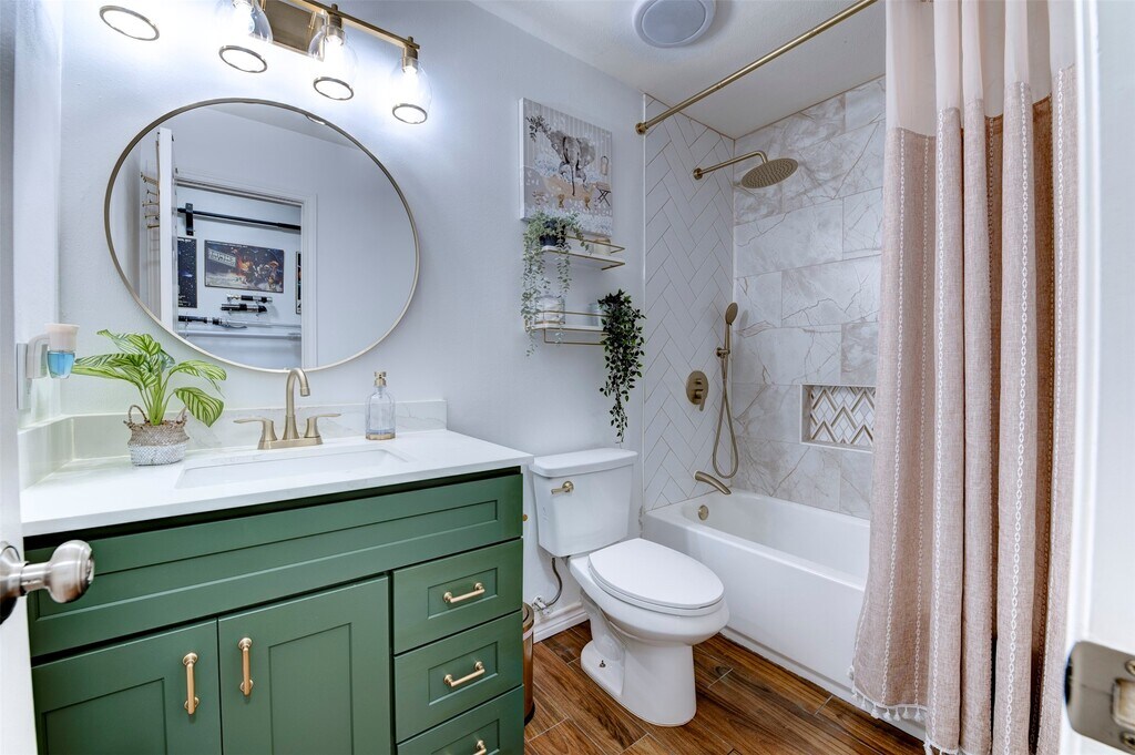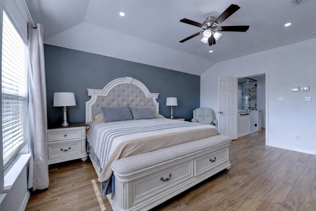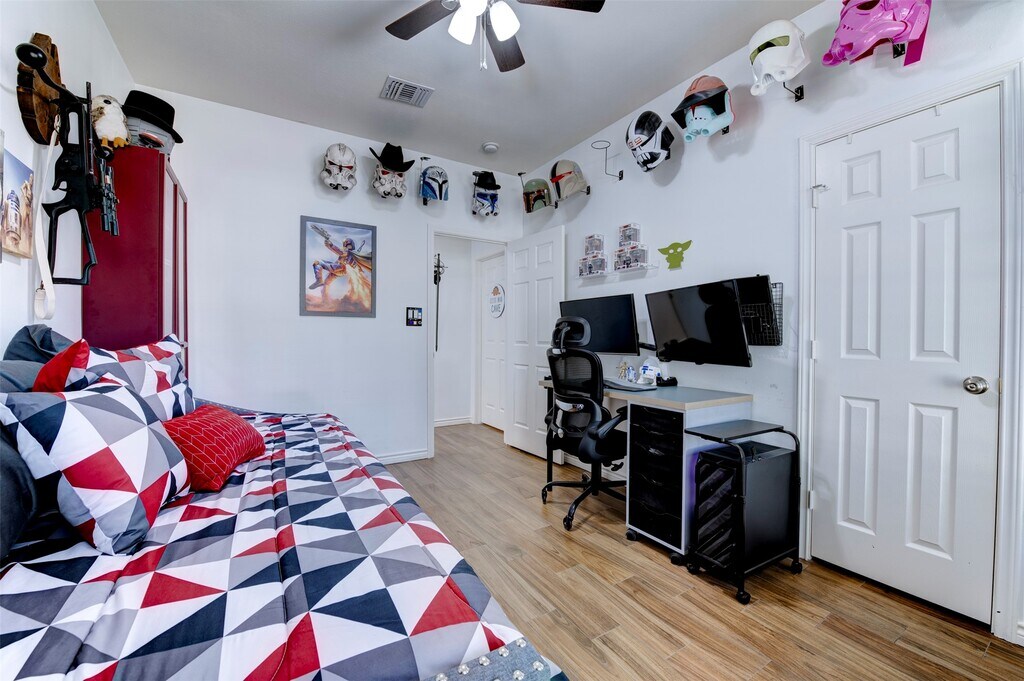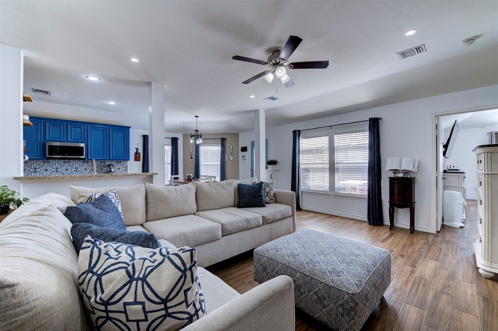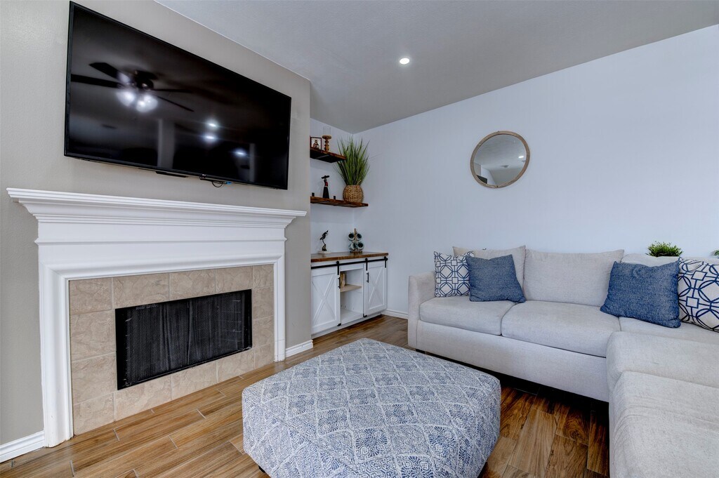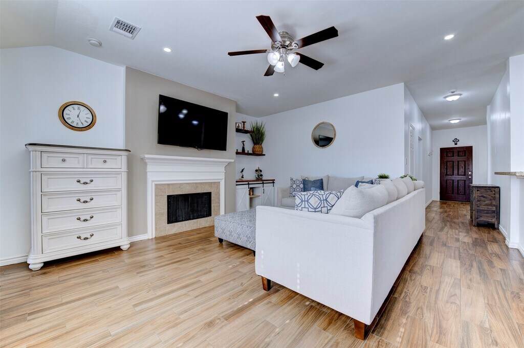 Nestled among mature trees in the desirable Waterside Village,this well-maintained 3-bedroom,2-bath home offers a thoughtful split floor plan with an elongated driveway and a spacious two-car detached garage. Set on a generous lot,the home features wood-like tile flooring throughout,forgoing any carpet,an open layout ideal for everyday living and entertaining,and a large kitchen with ample cabinet and counter space that flows seamlessly into the living spaces. The fully updated pantry includes additional shelving,built-in outlets,and enhanced storage. The private primary suite is tucked away from the secondary bedrooms and features a fully updated ensuite bath with dual vanities and an oversized glass-enclosed shower with a spacious walk-in closet. Conveniently located near shopping,dining,major highways,and highly rated Fort Bend ISD schools,this home is truly move-in ready. MLS# 74281019