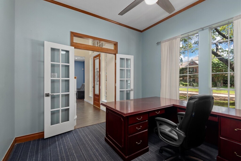 Nestled in the heart of Champions,this exquisite home boasts a spacious open floor plan,perfect for hosting gatherings. The recently updated kitchen and primary bath feature custom cabinetry and high-end fixtures. The primary bedroom showcases an oversized smart/Bluetooth mirror. Additional highlights include a large laundry room with cabinets and a folding area,a landscaped backyard,and a 3-car garage. Working from home? The first-floor office offers built-in cabinetry and ample natural light. Conveniently located within walking distance to a community pool and racquet club,this stunning property is a must-see! MLS# 65732791