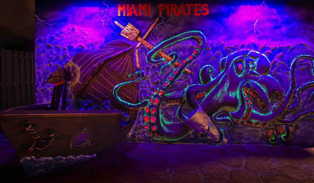 Ahoy, mateys! This pirate-themed retreat is the ultimate getaway, featuring 5 bedrooms, 3 bathrooms, and a themed room. The open-concept design includes a spacious living area, dining space, and a stylish kitchen with a bar. Step outside to a private themed pool, mini golf, pool table, BBQ area, and more. Perfect for families and groups, this adventure-filled escape offers everything you need for an unforgettable stay. Welcome aboard this pirate-themed paradise, designed for fun and relaxation. The open-concept living room, dining area, and fully equipped kitchen with a bar create the perfect gathering space. Enjoy themed décor, spacious bedrooms, and modern comforts throughout. Outside, dive into the pirate pool, play mini golf, or enjoy the BBQ and game area. Every corner is crafted for adventure and comfort, perfect for families and groups. Located in a tranquil residential area, Pirate Cove offers convenient access to a variety of dining and cultural experiences. Just a short drive away, you'll find several notable attractions, including Mamma Mia Pizzeria & Restaurant, La Perla Peruvian Restaurant, Zoo Miami, The Gold Coast Railroad Museum, The Falls Shopping Center, and Fairchild Tropical Botanic Garden. Whether you're looking to explore local cuisine or enjoy cultural sites, this area provides a diverse array of options to enhance your stay. This location offers easy access to major highways and public transportation options, making it convenient to explore Miami and surrounding areas. Florida's Turnpike, Don Shula Expressway, US-1, and Kendall Drive are all nearby, along with Metrobus routes and the Metrorail. Miami International Airport and Fort Lauderdale-Hollywood Airport are also within reach, ensuring seamless travel. Quiet hours are between 21:00 and 8:00. Registration Number: U [SI]