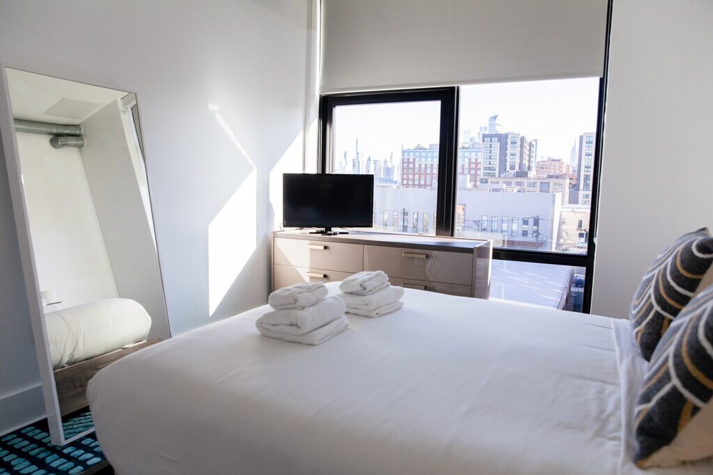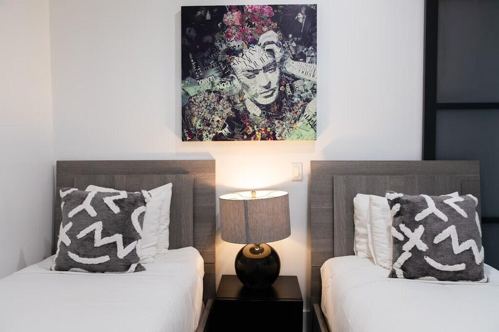 Feel at home in this spacious two-bedroom apartment located in the vibrant community of Hoboken, offering breathtaking views of the Manhattan skyline. Perfectly tailored for both short-term and extended stays, this apartment provides comfort and privacy, ideal for families and business travelers alike. The units are situated on the third, fourth, fifth, or sixth floor, ensuring a serene and peaceful stay. The apartment is designed to please, featuring a fully furnished interior that caters to all your needs. Enjoy the convenience of a fully equipped kitchen and relax in the comfort of your private space. For fitness enthusiasts, there is an on-site Real Hot Yoga studio. Additionally, a rooftop terrace on the 7th floor offers spectacular views of Hoboken. A 24-hour check-in service is available for your convenience. An additional guest can stay for $50 per night. Conveniently situated in Hoboken, this apartment offers easy access to the New York Metro Area. The vibrant community provides a perfect blend of comfort and accessibility, making it an ideal location for exploring nearby attractions. Scheduled fire alarm and elevator maintenance is set for September 10, 2025, from 9:00 AM to 4:00 PM. Fire alarms may sound intermittently, and the elevator may be briefly unavailable during this time. Smoking is strictly prohibited inside the property and apartments, including cigarettes, e-cigarettes, and marijuana. Violations may result in a penalty of up to $500. Security cameras operate 24/7 in exterior areas of the building for the safety and peace of mind of all guests. Please refrain from moving furniture such as beds and sofas, as it can cause damage.