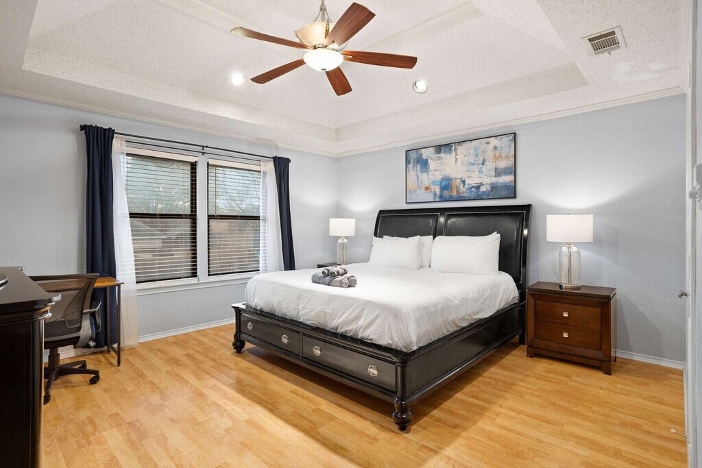 The advertised rate of $11,368/month is the lowest available price, based on a 1 month(s) stay with a move-in date of April 11, 2026. Rates vary depending on the duration of stay, season, and other parameters. For exact pricing and additional pricing components, please visit our website and enter your desired move-in and move-out dates. The rate is applicable when billed upfront; it can be higher if billed in multiple payments. Located a short drive from the best of Texas, feel at home in this stunning home with 5 bedrooms and 3 bathrooms. This home features a fully equipped chef’s kitchen, a backyard pool oasis, and a game room with a full-sized pool table. The kitchen is fully equipped with appliances, including a fridge, freezer, stove, oven, dishwasher, and microwave. The living area and game room offer comfortable seating, a poker table, and a pool table. Enjoy the outdoor swimming pool, furnished patio, and BBQ grill in the fully fenced yard. Please note that the spa heating element and jets are inoperable. Free parking is available on the premises. House-trained pets are welcome with a non-refundable pet fee of $150 per pet (maximum of 2 pets per stay). An additional nightly rate of $29 per night will be applied for each guest exceeding six. DeSoto, located 15 minutes south of downtown Dallas, offers a blend of big city excitement and small-town charm. Nearby attractions include Windmill Hill Nature Preserve, DeSoto Civic Center, DeSoto Arts Commission and Amphitheater, and Les Zeiger Park. Dallas attractions include The Sixth Floor Museum at Dealey Plaza, The Dallas World Aquarium, Perot Museum of Nature and Science, Galleria Dallas, and AT&T Stadium. Smoking of any type is not allowed and violations are subject to a $450 fine plus the cost to clean, deodorize, and repair damages. No parties or large unauthorized gatherings are allowed. Only registered guests are permitted on the property. No street parking is allowed due to city parking regulations. The maximum number of cars allowed are 2 in the garage and 6 in the driveway. Registration Number: STRL - [SI]